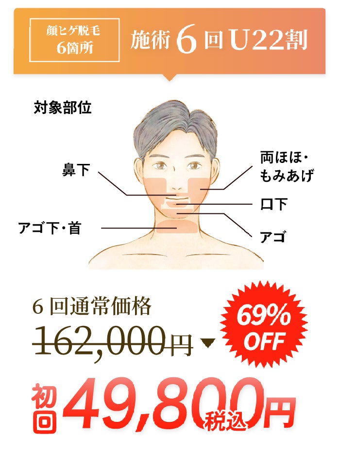 脱毛価格:通常価格 162,000円 ▶︎ U-22特別価格 49,800円