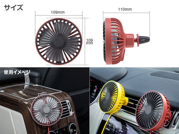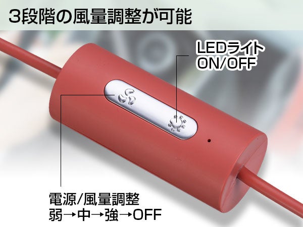 ・USB給電式なので、車内以外でも小型扇風機として使用可能