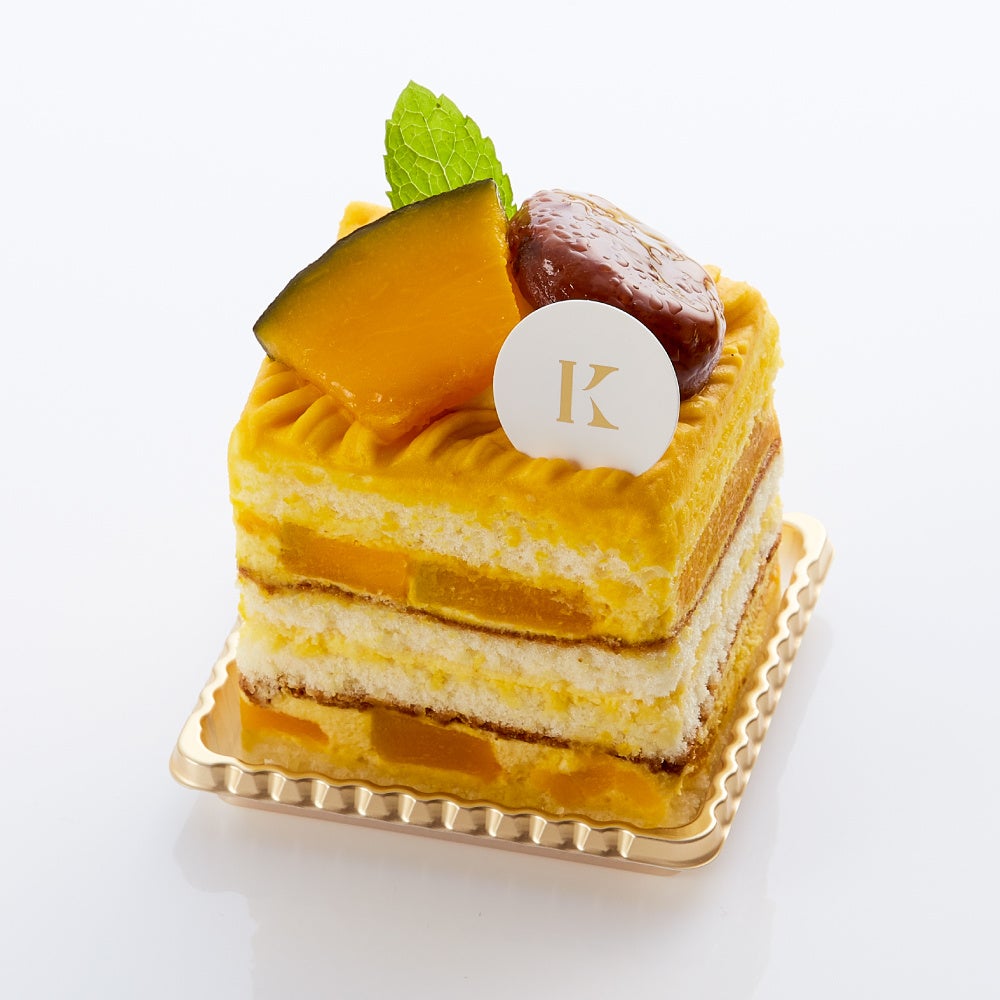 かぼちゃのコンポート、かぼちゃのカスタードクリーム、かぼちゃ風味の生クリームなど、旬のかぼちゃのおいしさをたっぷりお楽しみいただけるケーキです。