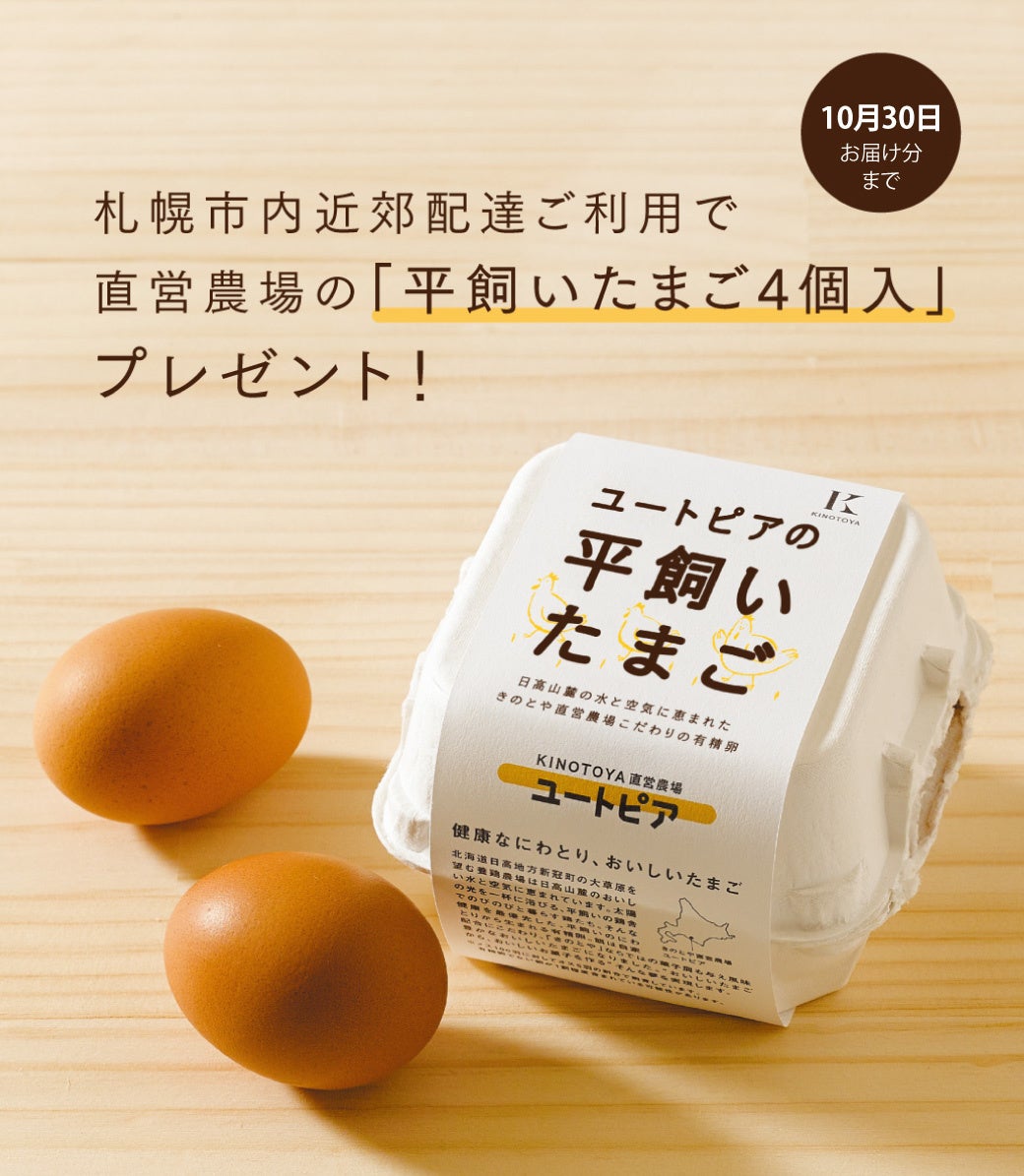 札幌市内近郊宅配ご利用の方に「たまご4個入」プレゼント