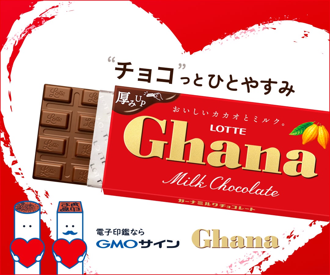 電子契約サービス「電子印鑑GMOサイン」が、バレンタイン期間中に「電子契約でお仕事をさくっと終わらせて"チョコ”っと休憩しませんか?」をコンセプトに皆さんの“ひとやすみ”を応援するキャンペーンを実施します。公式Xでは、「GMOサイン」オリジナルグッズとAmazonギフト券を、ガーナチョコとセットで10名様にプレゼント。他にも「ちょこっとひとやすみ」にまつわる楽しいXコラボ投稿にも是非ご注目ください。