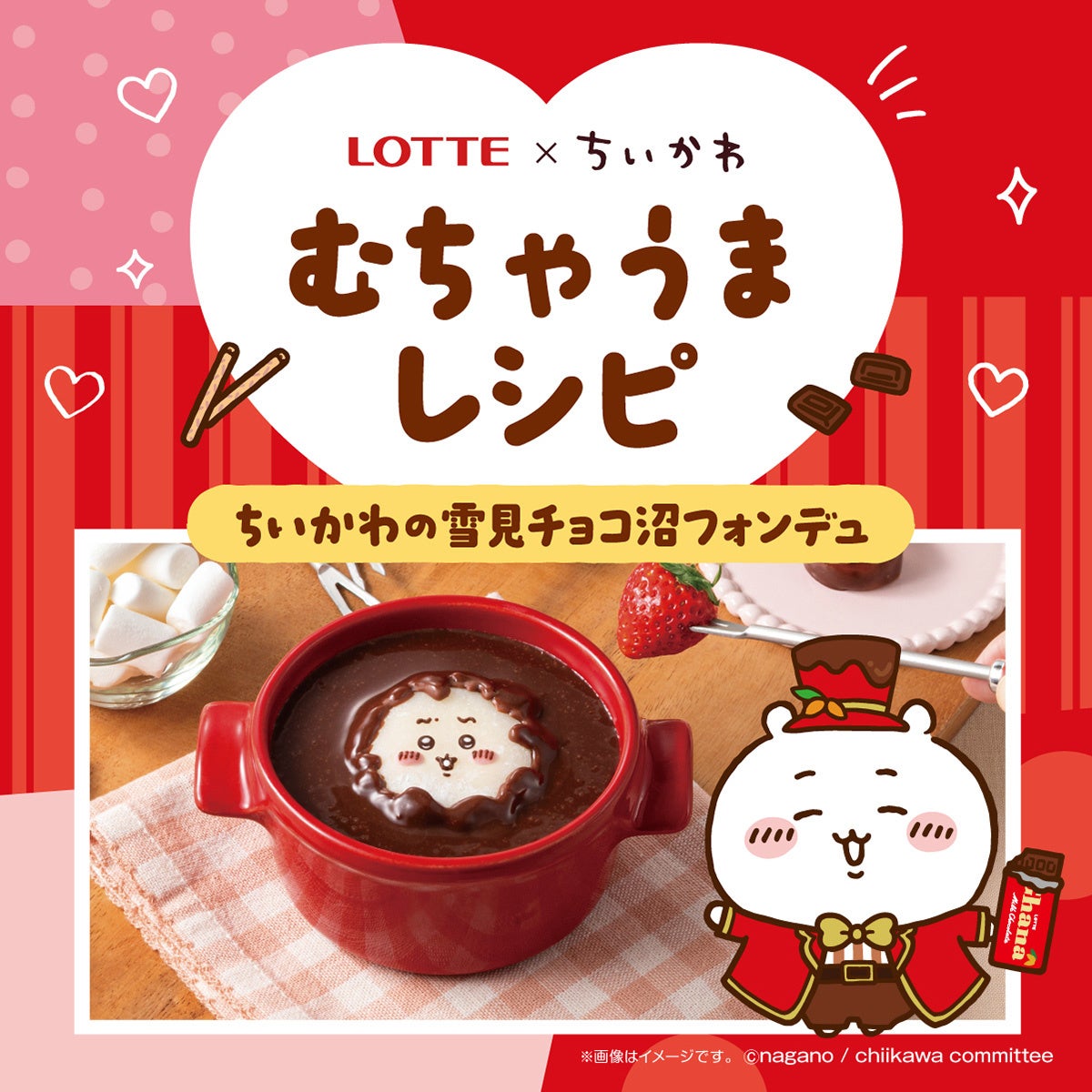 バレンタインのせいにして。今年もロッテと「ちいかわ」のコラボが実現!ガーナをはじめとしたお菓子・アイスを使ったちいかわレシピや、ちいかわの型付きオリジナルミニ冷蔵庫があたるキャンペーンなど盛りだくさん。昨年好評いただいたオリジナルデザインの待ち受けもガーナX公式アカウントから投稿予定。ぜひバレンタインまで待ち受けにしてくださいね!バレンタインのせいにして、ちいかわたちと一緒に楽しんじゃいましょう!