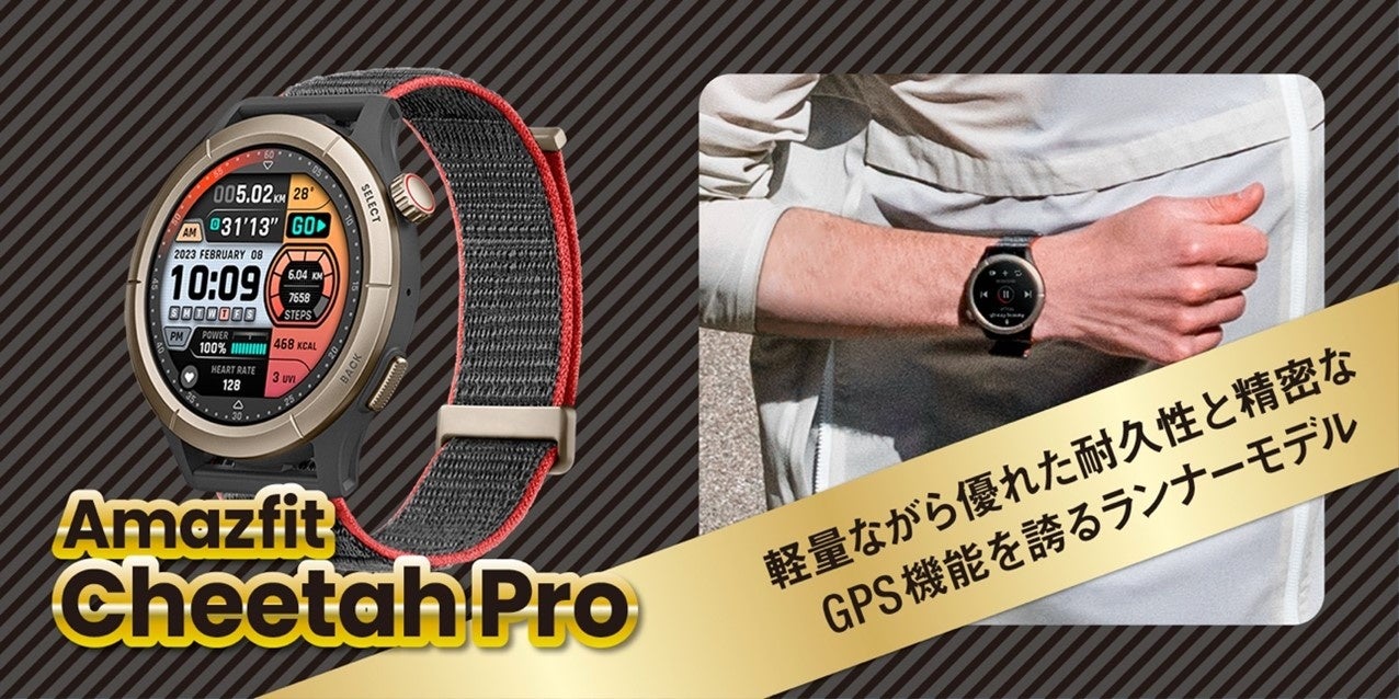 さらに業界をリードするGPSテクノロジー「MaxTrack™」を搭載し、正確な位置情報を提供。豊富な収集データでパフォーマンスや健康状態を詳細に分析できます。軽量で通気性の優れたデザインは、長時間のランニングでも快適。新製品のAmazfit Cheetahで毎日のランニングを進化させましょう!