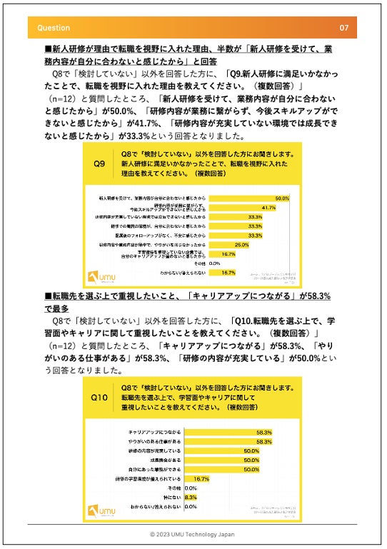 オンライン学習プラットフォーム「UMU(ユーム)」を展開しているユームテクノロジージャパン株式会社(本社:東京都港区、代表取締役:松田しゅう平、https://www.umujapan.co.jp、以下、UMU)は、2022年に発表した調査のうち、「 研修・オンボーディング」に関する内容を取りまとめた「【2023年】研修・オンボーディング白書」を公開いたしましたので、お知らせいたします。