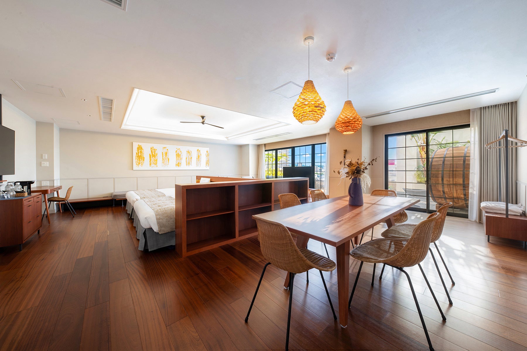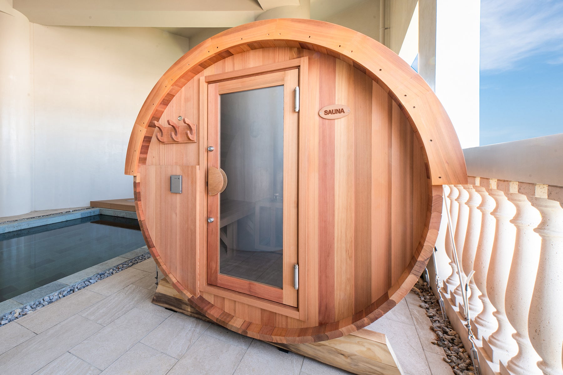 ・絶景テラス: 開放感あふれるテラスに、バレルサウナとプライベートプールを完備。