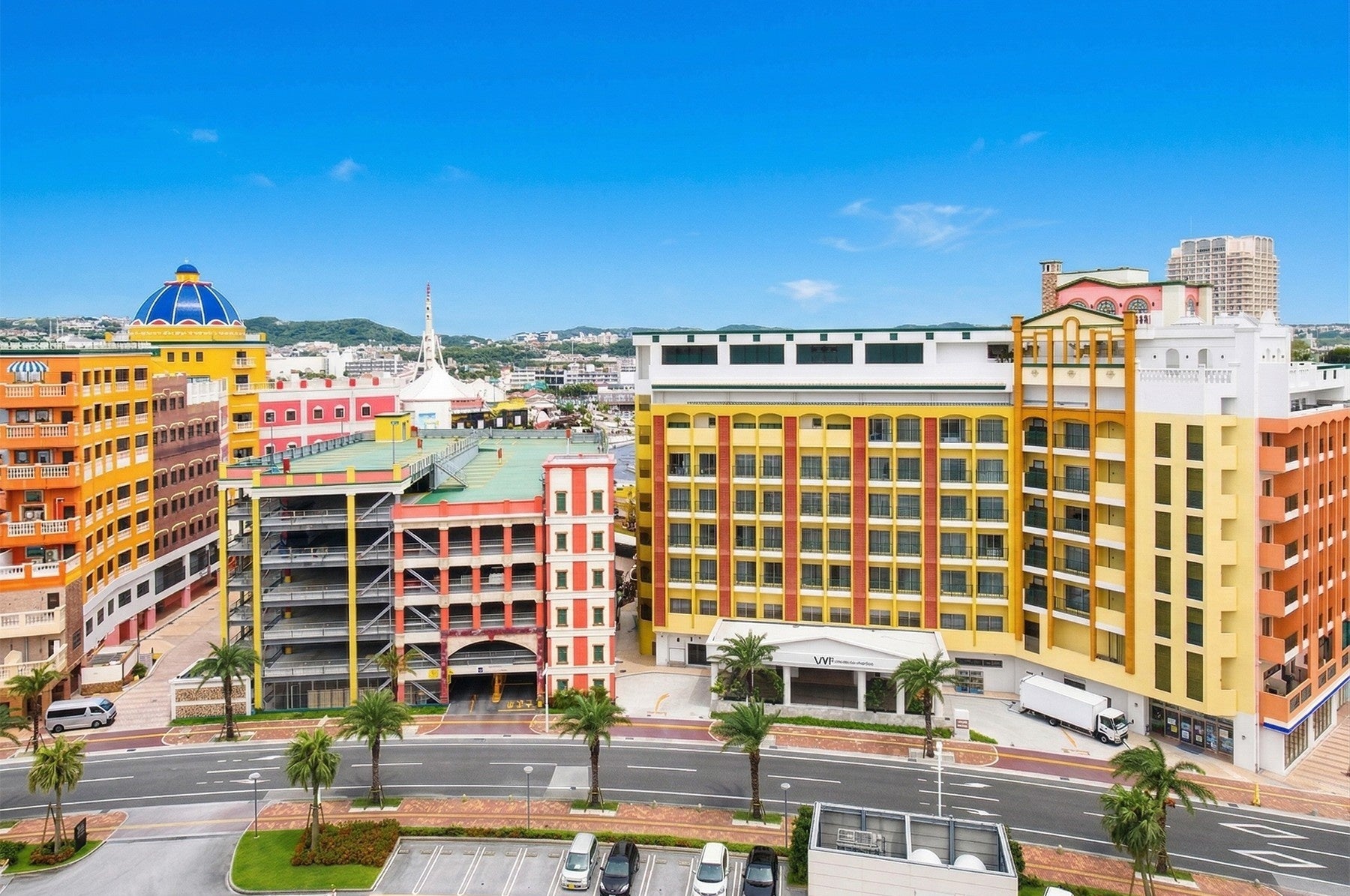 那覇空港から車で40分、沖縄本島の西海岸のアメリカンビレッジ内に位置し、沖縄中部の観光に最適。メイン棟(地上8階)とプレミア棟(地上7階)の2棟からなり白を基調としたモダンでシンプルなインテリアで統一され、地下1,400メートルから汲み上げた天然温泉スパやインフィニティプールなど非日常の時間とワンランク上のパーソナルなサービスをご提供しています。さらに、朝食はあぐー豚のバーガーやラフテー、ゆし豆腐など沖縄料理がご堪能いただけます。