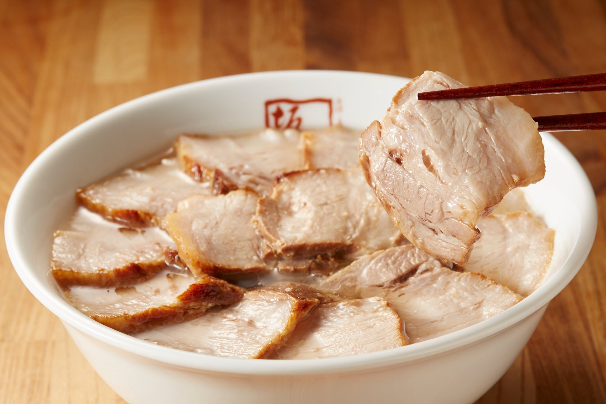 トロける柔らかさと凝縮された旨味を味わっていただける坂内自慢の自家製焼豚は、社長自ら原産地へ赴き、厳選したものを使用しています。現在はスペインを中心に、10日から18日間ほどかけて熟成させ輸入しております。仕入れた豚肉は、じっくりと大鍋で煮て余分な脂を落とし、赤身部分はふわっと仕上げます。調理する上で一番重要なことは「坂内」のスープの要、醤油に合うこと。スープと合わさった瞬間、コクと旨味がプラスされて味わいを引き立て、口の中でトロける脂身と、ジューシーで柔らかい赤身のおいしさを存分に味わっていただけます。トロ旨焼豚は坂内の自慢の逸品です。