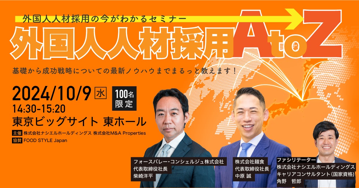 「ラーメン産業展 in Japan」と同時開催される「FOOD STYLE Japan 2024」にて、10月9日(水)、株式会社ナシエルホールディングス主催の『外国人人材採用 A to Z』に、弊社代表取締役社長の中原 誠がゲストスピーカーで参加いたします。