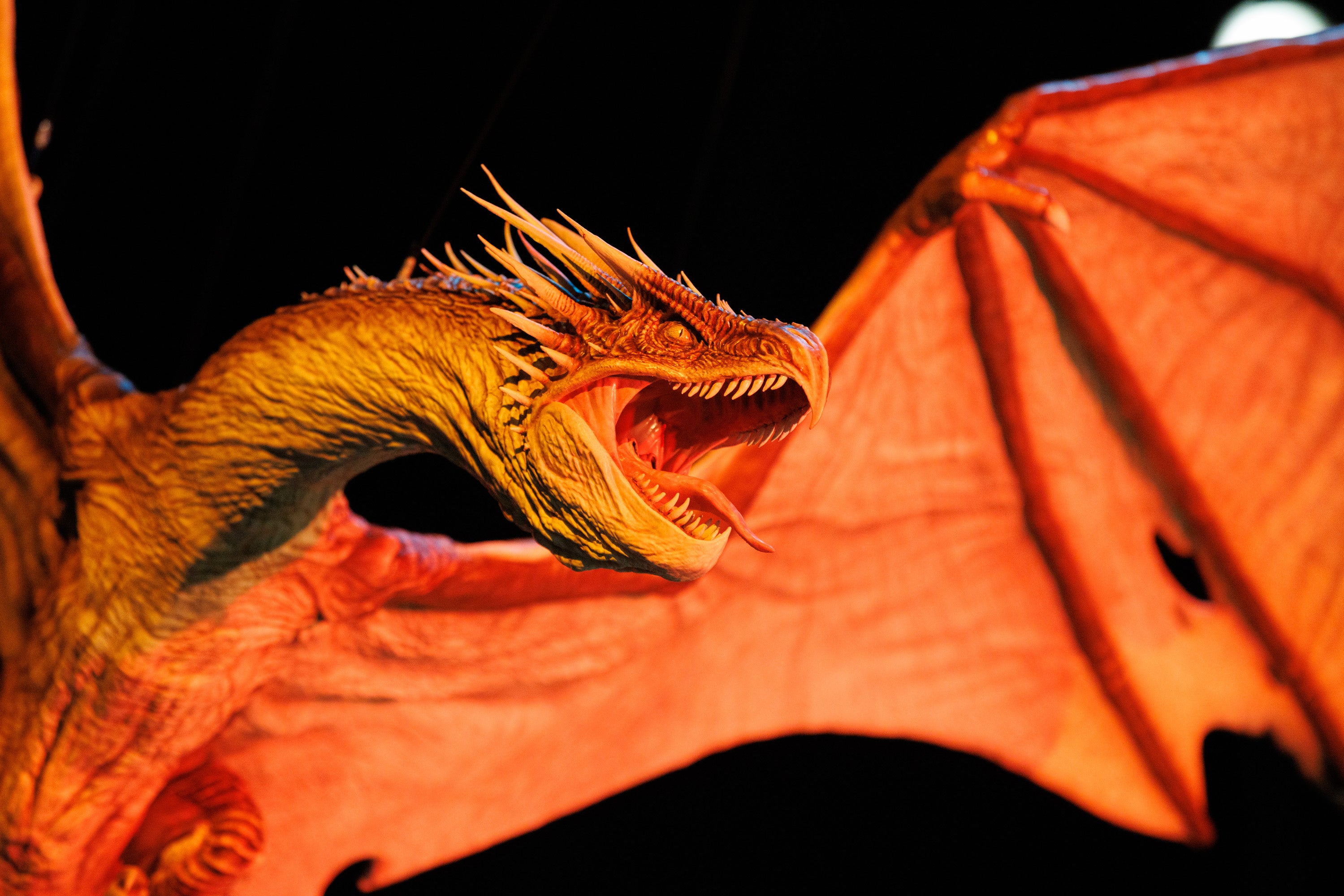 今回、イギリスで制作されたのは全長約7.6メートル、重さ約1.3トンにもなる巨大なアニマトロニクスのハンガリー・ホーンテールです。映画で使用された実物スキャンを元に頭部を精巧に再現。ドラゴンの頭部と尾には計119本の“とげ”や38本の鋭い歯が1本ずつ丁寧に手作業でとりつけられ、「ハリー・ポッター」シリーズのフィルムメーカーであり、アニマトロニクス・デザイナーのジョー・スコット氏をはじめ、エンジニア、アニマトロニクス・デザイナー、特殊効果の各チームが750時間以上もかけて命を吹き込みました。