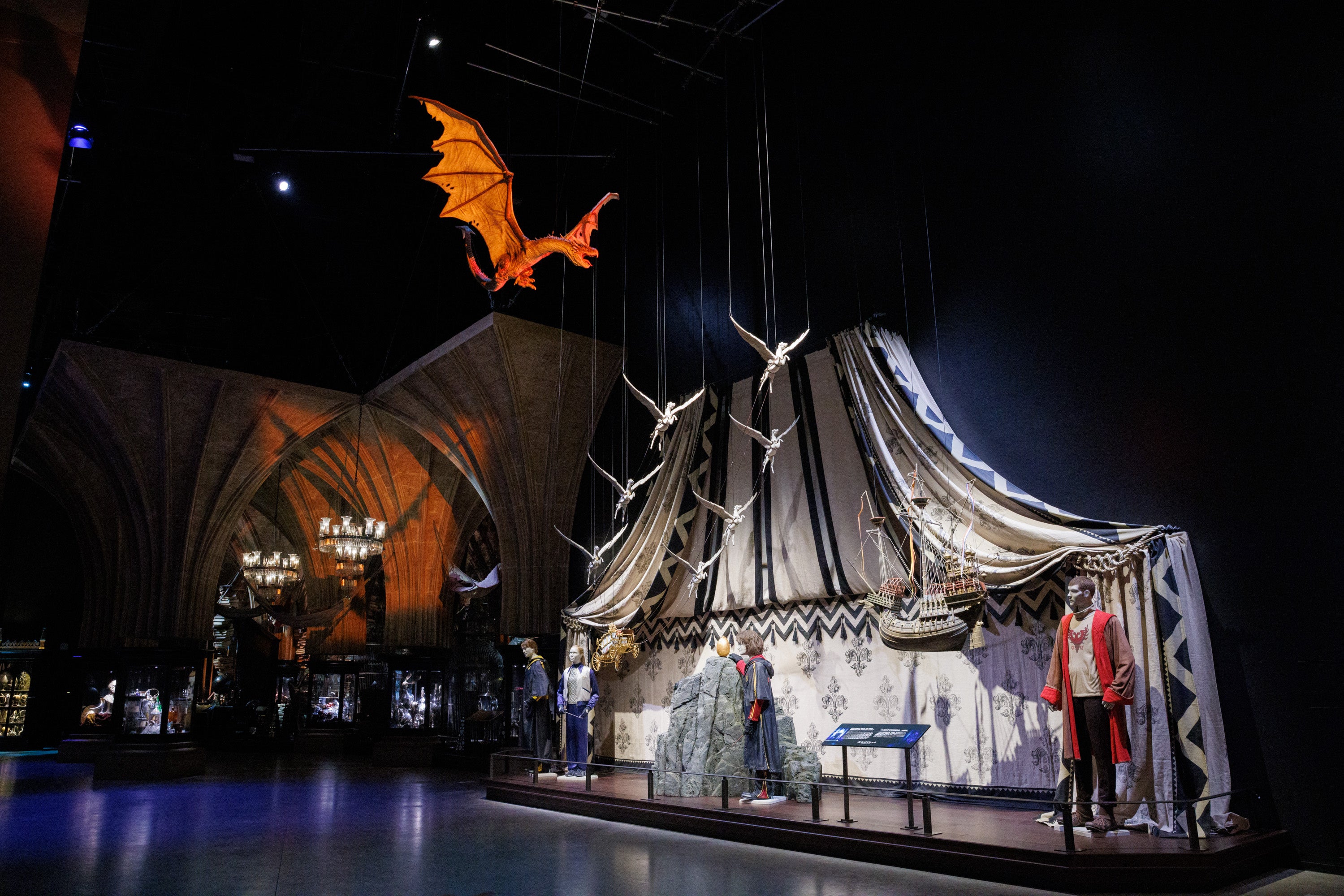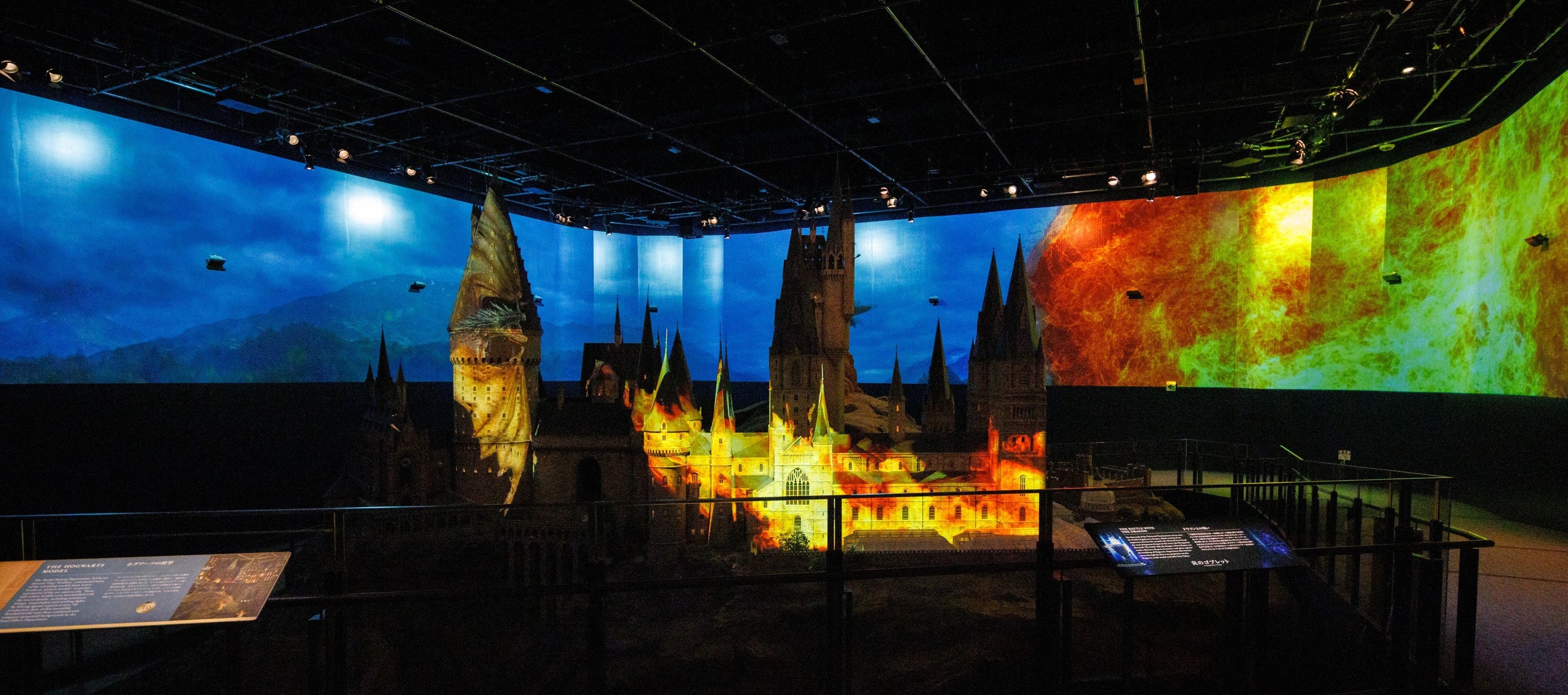 ツアーの最後ではホグワーツ城の模型を壮大なプロジェクションマッピングによって演出。第一の課題でファイアボルトに乗ったハリーと、火を吹きながら追いかけるドラゴンとの疾走感あふれる映像演出は圧巻です。まさに特別企画「炎のゴブレット」のクライマックスにふさわしく、映画の音源そのままに、立体的な映像で再現されたストーリーを様々な角度からお楽しみいただきます。