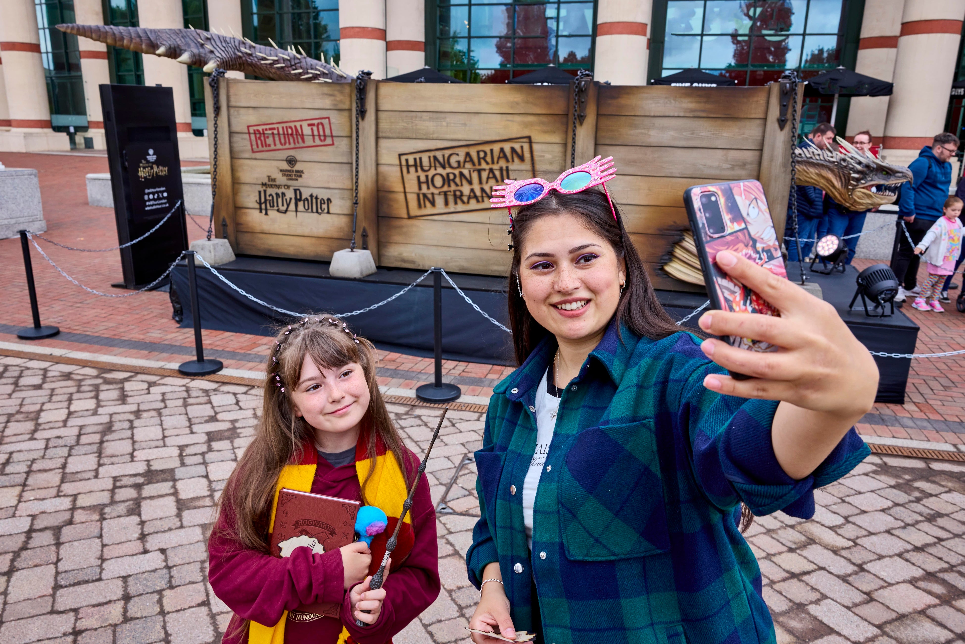 来日するドラゴンは、作中に三大魔法対抗学校試合(トライウィザード・トーナメント)の第一の課題においてハリーと戦ったドラゴンであるハンガリー・ホーンテールで、ロンドンのスタジオツアーで行われている映画公開20周年特別企画「トライウィザード・トーナメント~チャンピオン誕生の舞台裏~」の開催に合わせ、職人たちの手で丁寧に制作されました。全長約7.6メートルもの大きさのドラゴンは、アニマトロニクスによって頭や目、口が動き、咆える姿がまるで映画から飛び出してきたような迫力で、英国各地に現れたこのドラゴンに多くのファンが足を止め、多くの話題を集めました。
