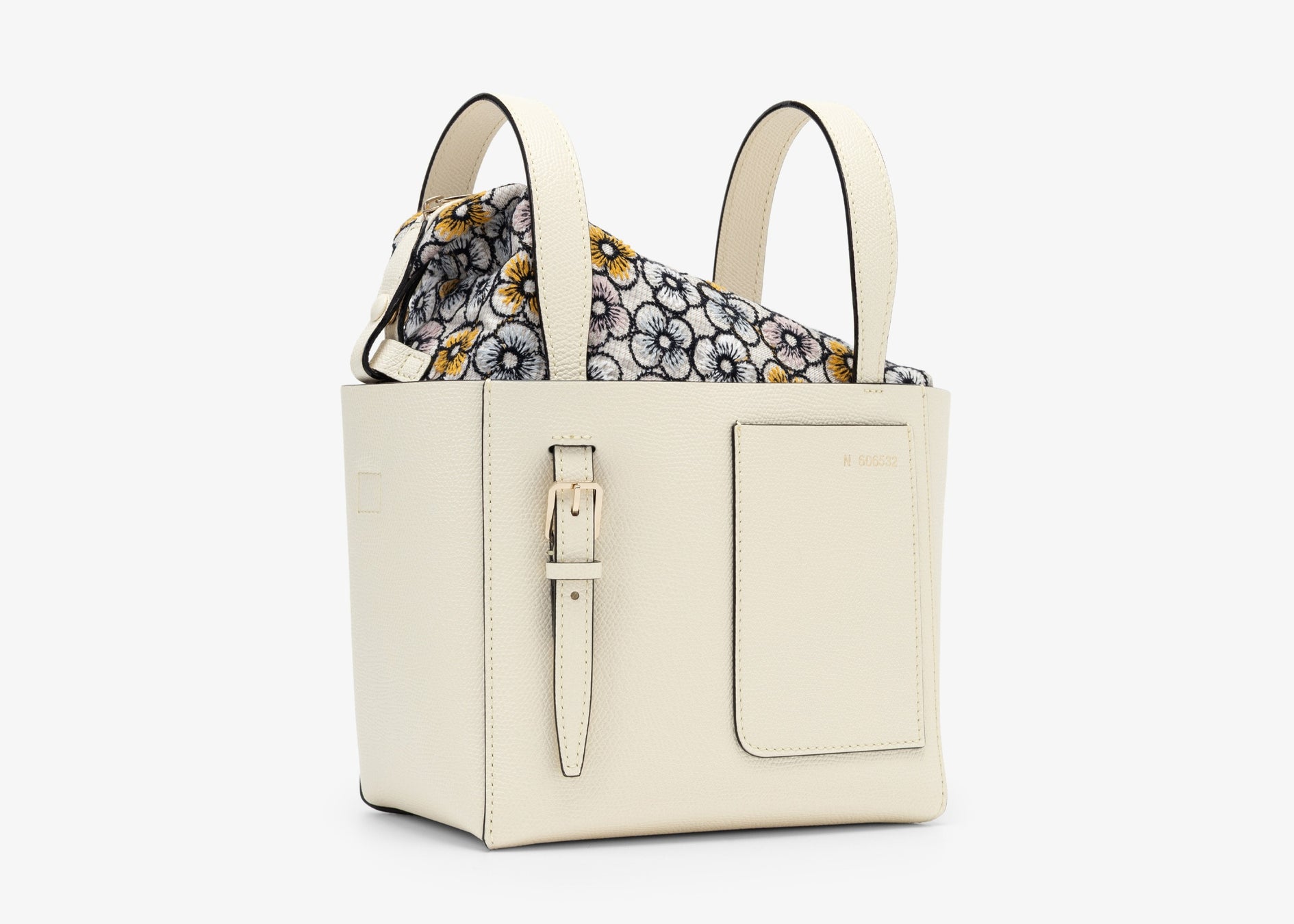ヴァレクストラの人気バッグに、ミナ ペルホネンのテキスタイルを用いたポーチをセットしました。このテキスタイルは、皆川 明氏が「小さな花が太陽の光を浴び、風に揺れながら穏やかに咲く姿」を想い描き、刺繍で表現したものです。花々の天真爛漫な姿は心をくすぐるような晴れやかさをもたらし、季節のめぐりや新しい生命の始まりを告げるかのようです。その華やかさと可憐さが、今回のヴァレクストラとのコラボレーションに最もふさわしいと皆川氏が選んだ理由でもあります。