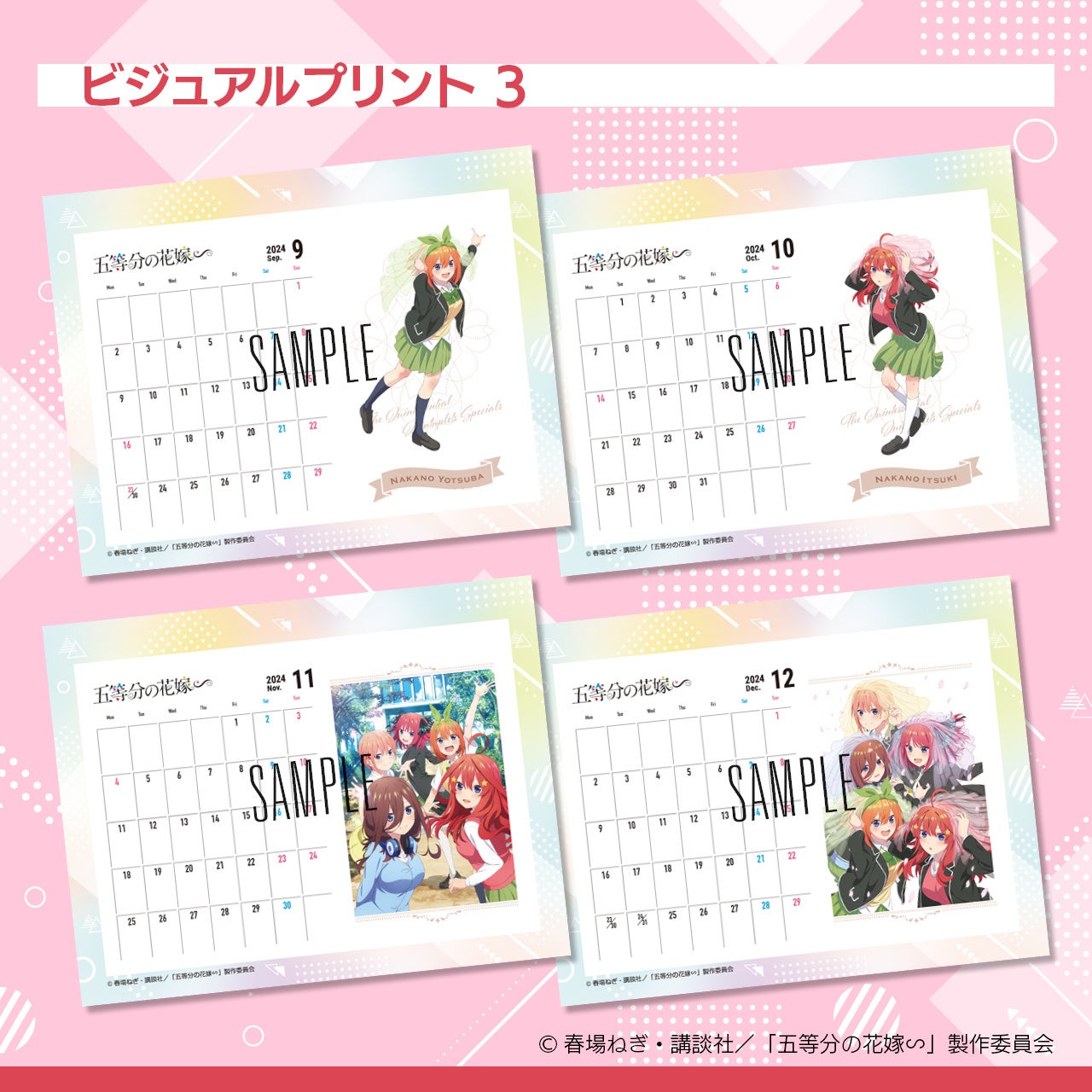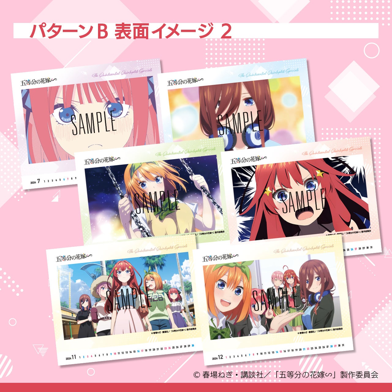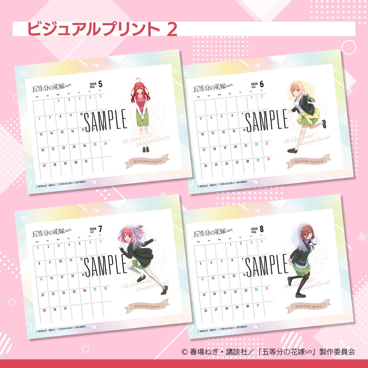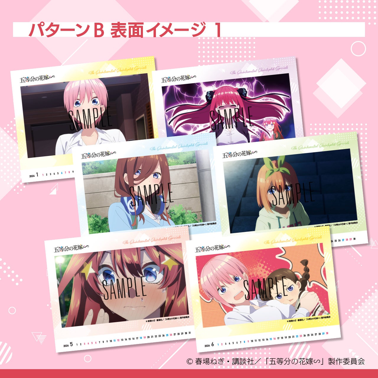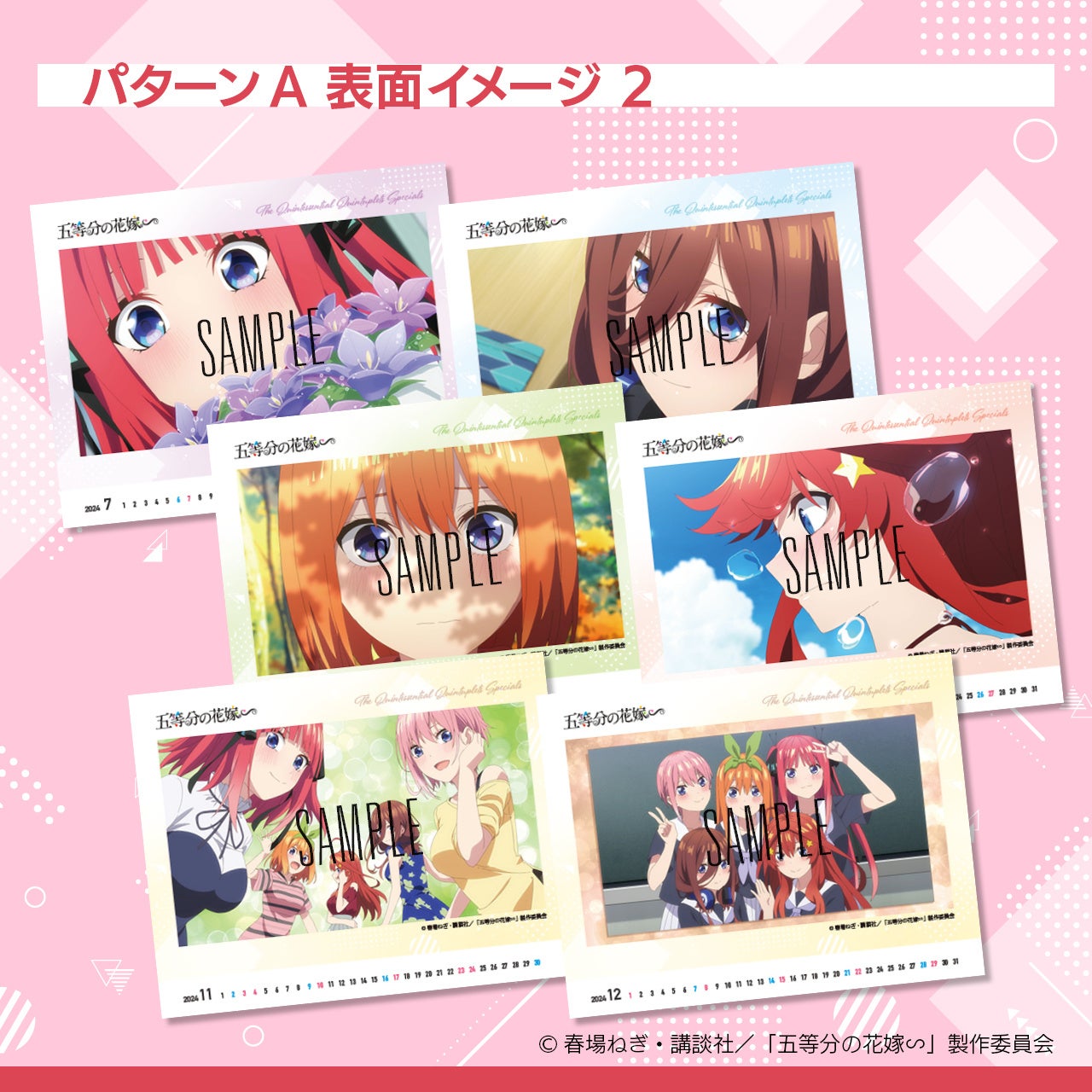 TVスペシャルアニメ「五等分の花嫁∽」の名場面から選んだ2パターンのカレンダーをご用意しました。