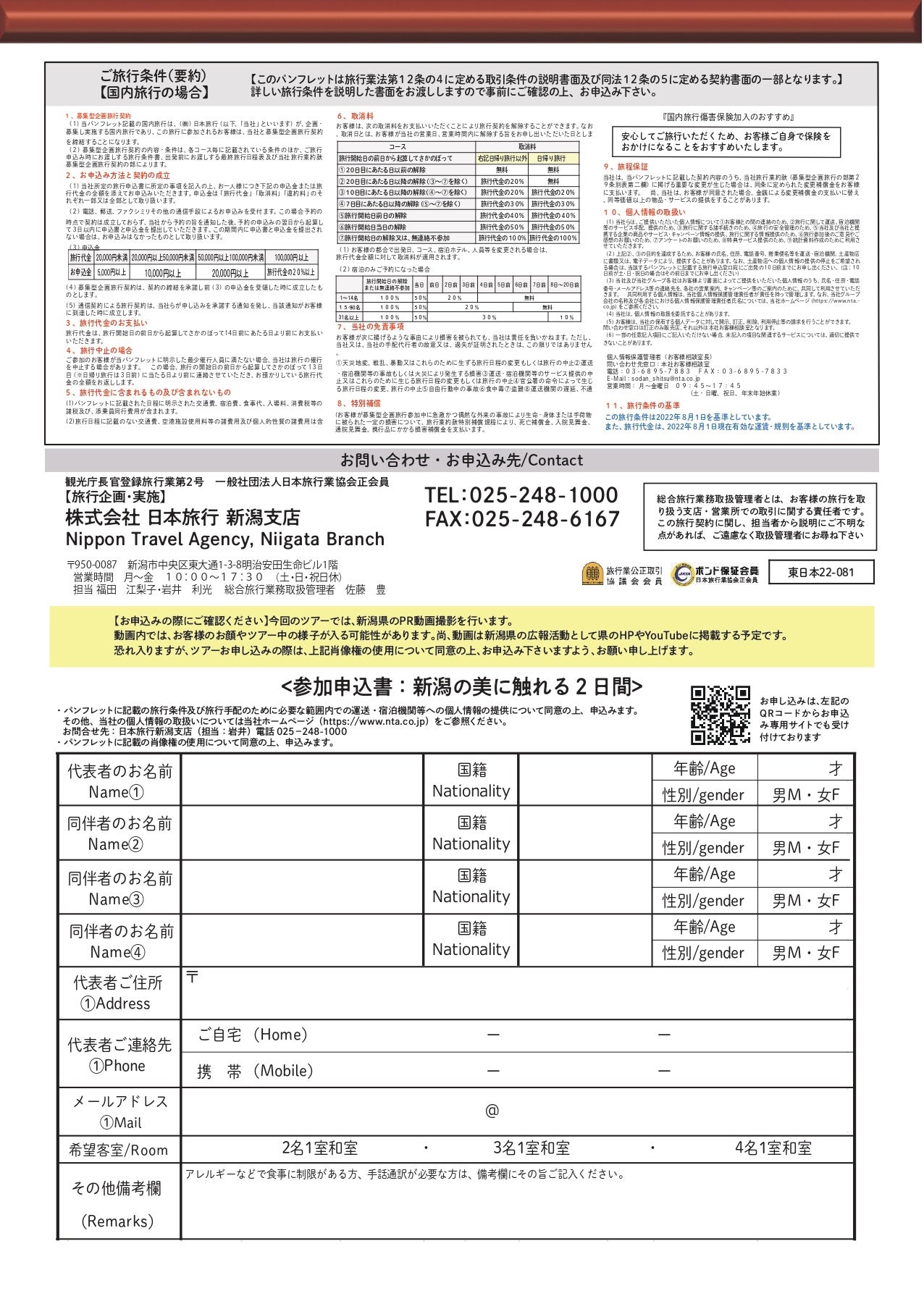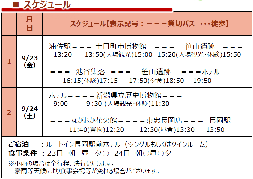 旅行代金:おひとり様33,000円※1名1室・2名1室(ともにバス・トイレ付)いずれも同価格募集締切:9月2日(金)