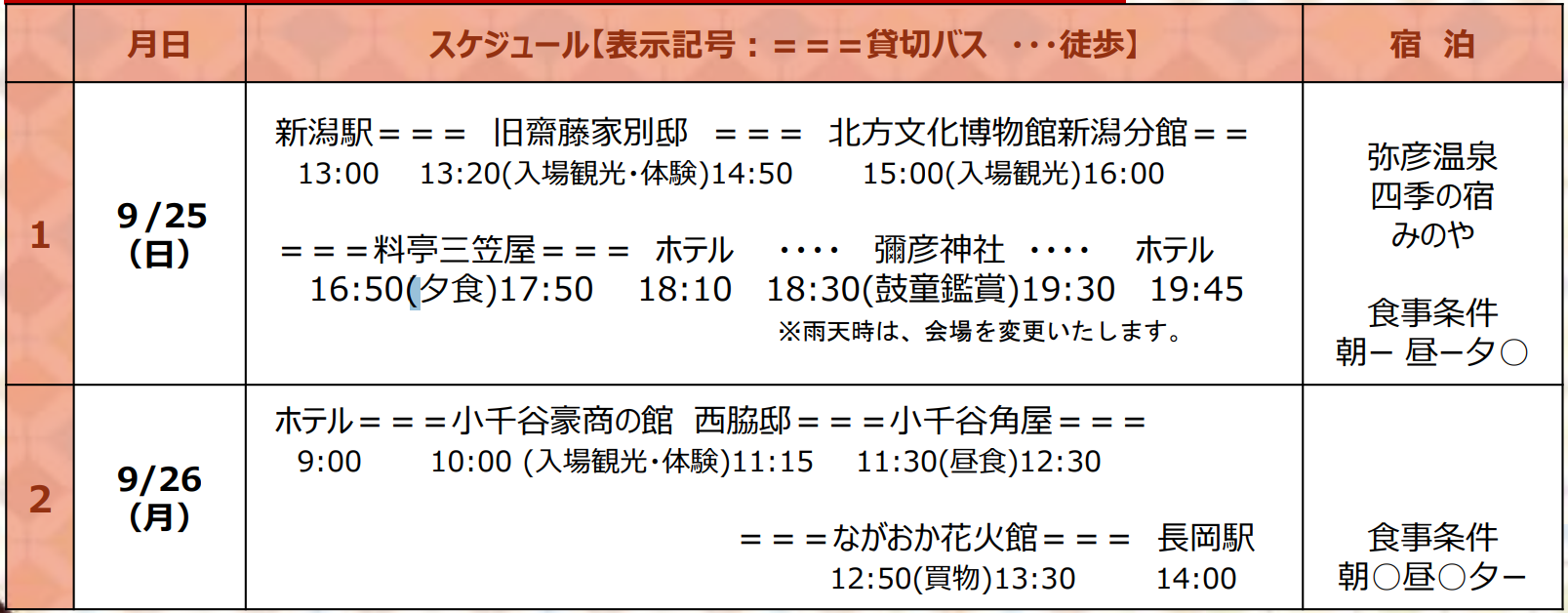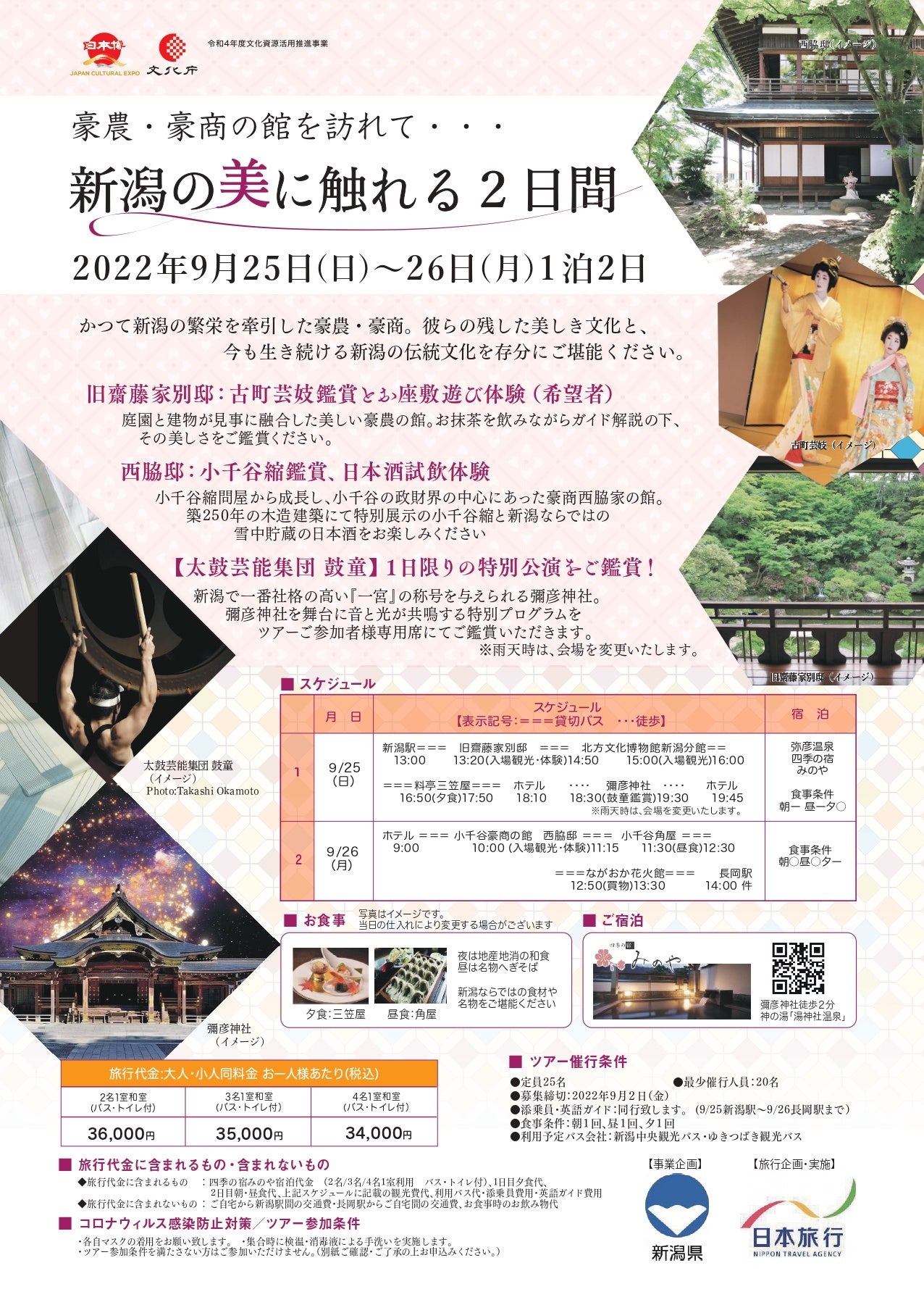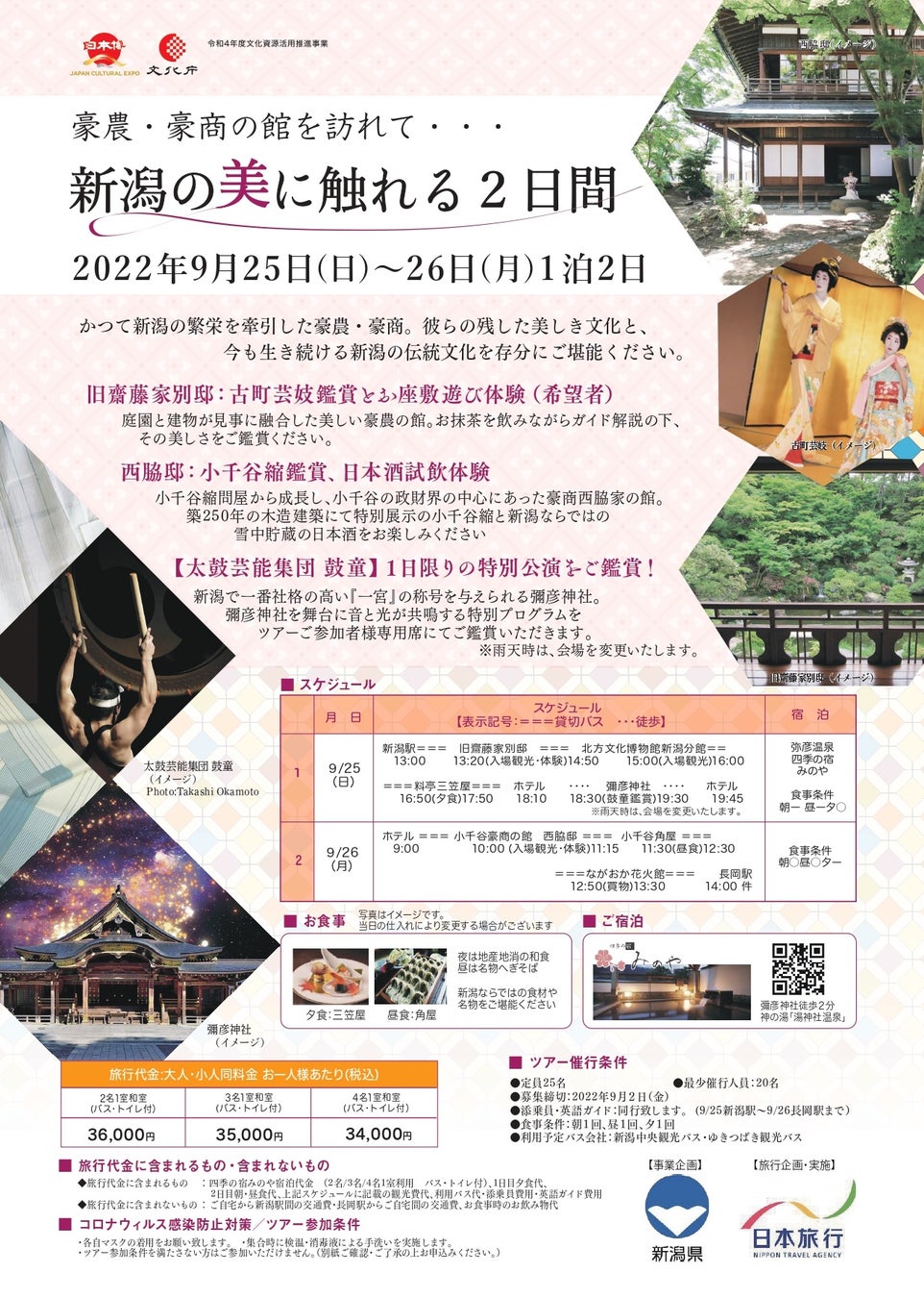 - 「豪農・豪商の館を訪れて…新潟の美に触れる2日間」ツアー < 9/25(日)~26(月)>