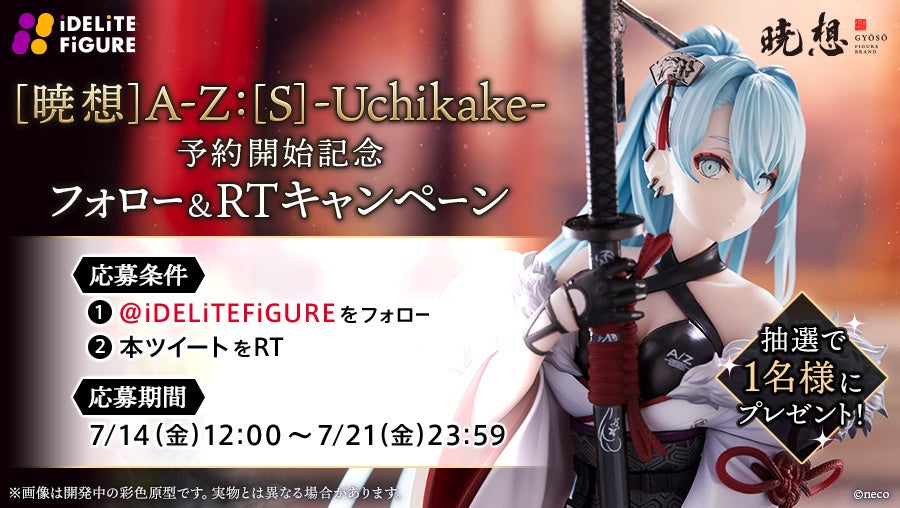 この度、『A-Z:』シリーズより、「[S]」を和装姿で表現した「[暁想]A-Z:[S]-Uchikake-」の予約販売を開始いたしました。購入者特典として公式通販サイトで購入されたお客様に「オリジナルB3ポスター」をプレゼントするほか、予約販売開始を記念して「iDELiTE FiGURE」公式Twitterにて、抽選でフィギュアが当たるキャンペーンを開催いたします。