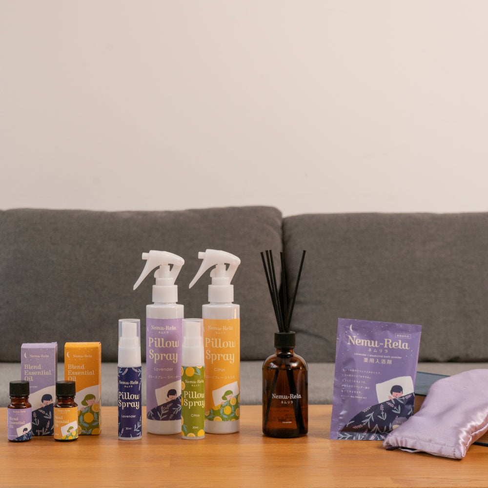 眠りの環境を整える、ネムリ×リラックスのシリーズ。お部屋アロマ~入浴剤などをラインナップ。