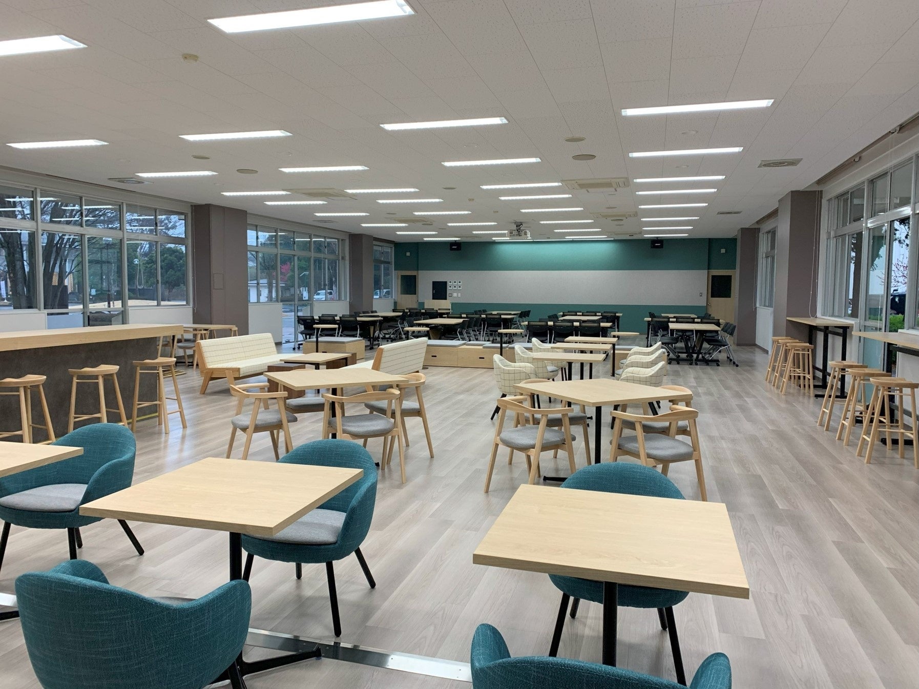 同校の“ラーニング・コモンズ”は、生徒が自由に集まってグループ学習や自習、友達とのコミュニケーションなど幅広い用途での使用を目指しています。目的に合わせて、当社が木目調を基本にしたカフェのようなリラックスできる空間設計を行いました。東農大三高のイメージカラーであるグリーンをアクセントに使用し、机や椅子を動かして様々なコミュニケーションの在り方に対応できるよう、空間の可変性を高めています。