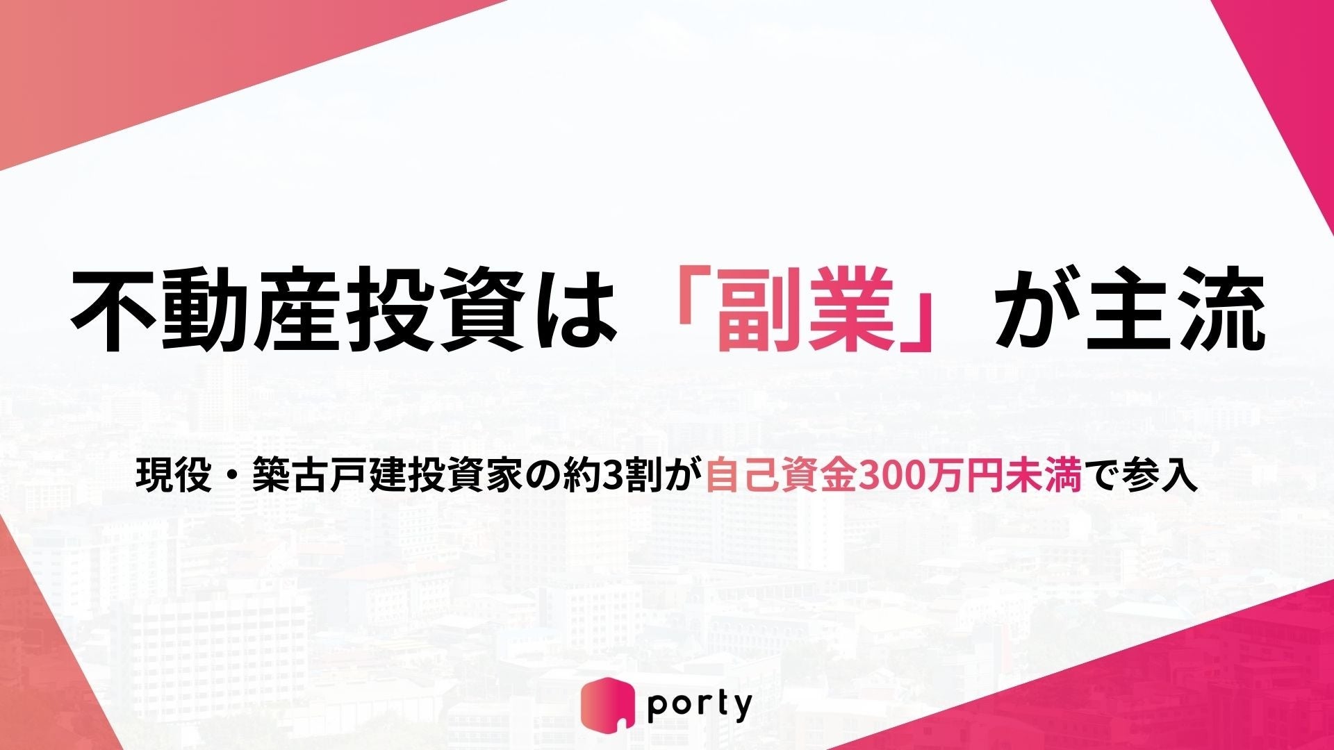 どんな家でも売り買いできるフリマアプリ「ポルティ空き家バンク」を運営する株式会社ポルティ(本社:神奈川県川崎市、代表取締役:平 瑶平)は、不動産投資家300名を対象に、取得価格800万円未満の「築古戸建(ちくふるこだて)」への投資実態に関する調査を実施しました。