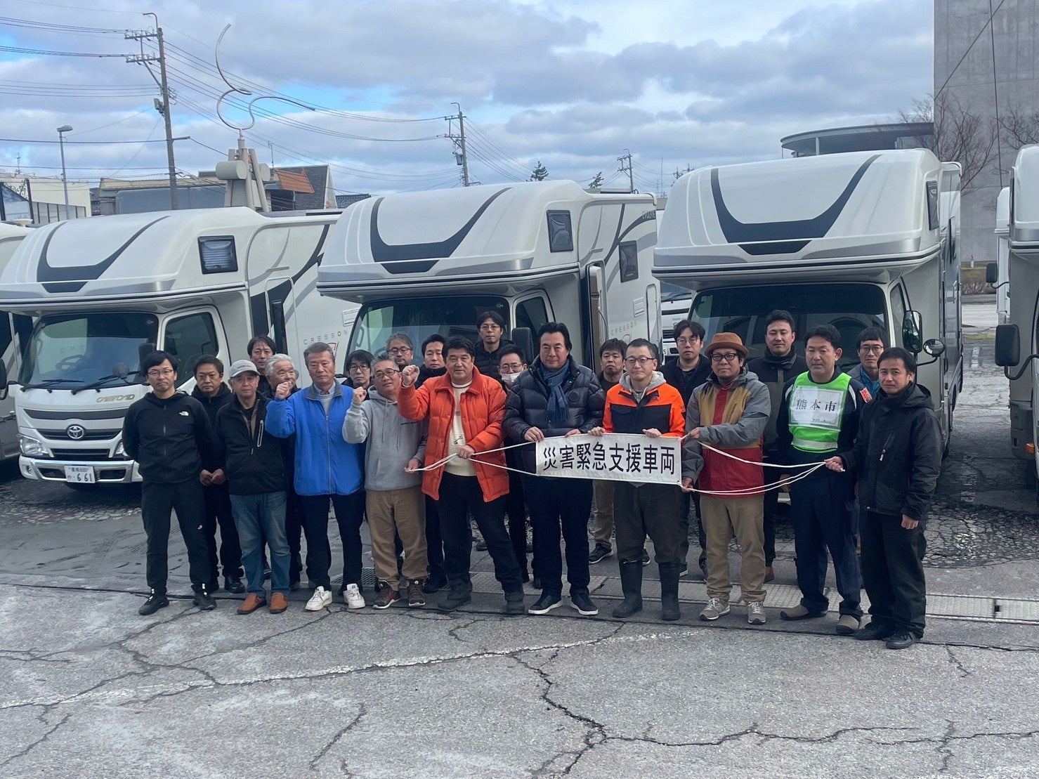 弊会では、令和6年1月1日に発生した「令和6年能登半島地震」に対して、石川県からの要請を受け、石川県珠洲市と輪島市に、会員企業から集まったキャンピングカー60台を派遣しました。派遣車両は、被災地で復興の中心となる自治体職員や全国からの応援職員の宿泊施設としてご利用頂き、能登半島復旧の一助としてお役立て頂きました。