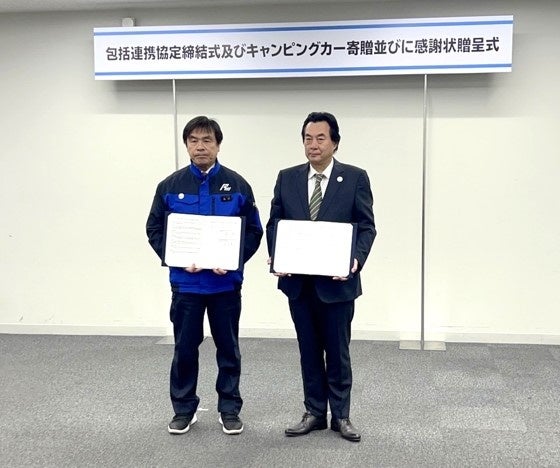 包括連携協定締結、キャンピングカーの寄贈、感謝状贈呈の概要