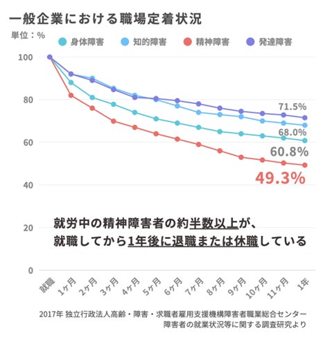 また、近年において精神障害者の急増や働き方の多様性に伴って、障害者雇用社員一人ひとりに合わせた適切なメンタルサポートが求められています。