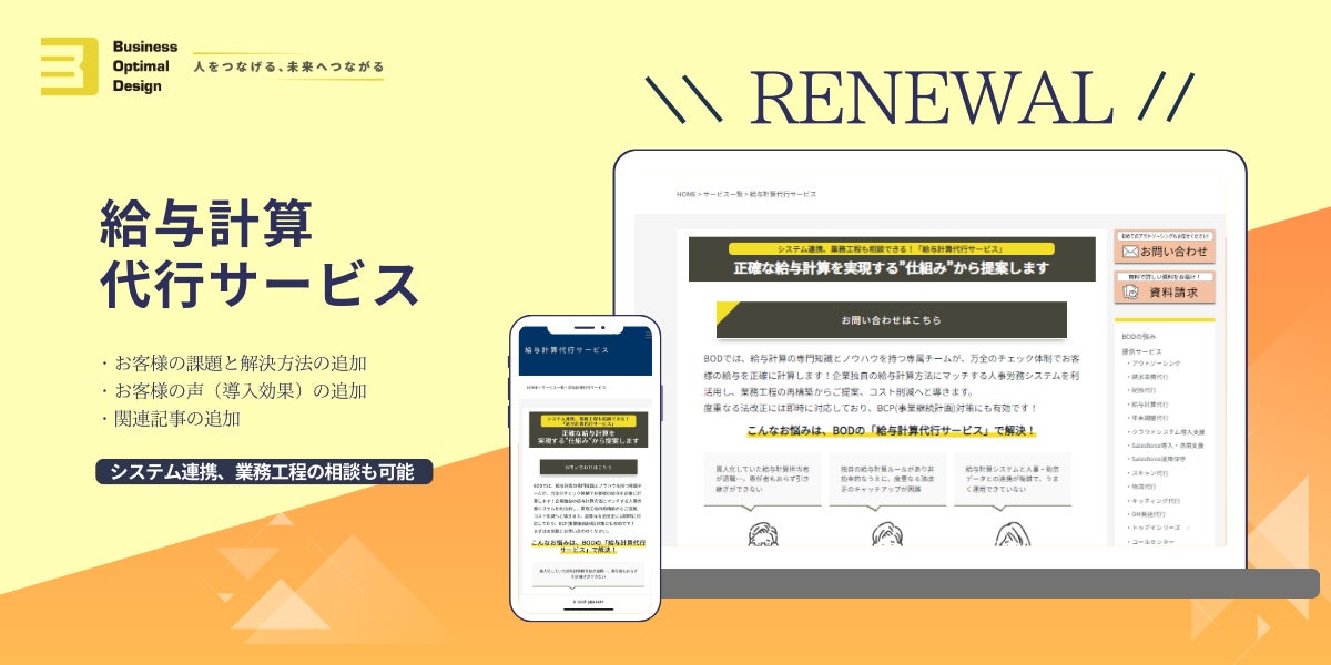 BOD、給与計算代行サービスのページをリニューアル、お客様のニーズに合わせたコンテンツを充実させたページを公開