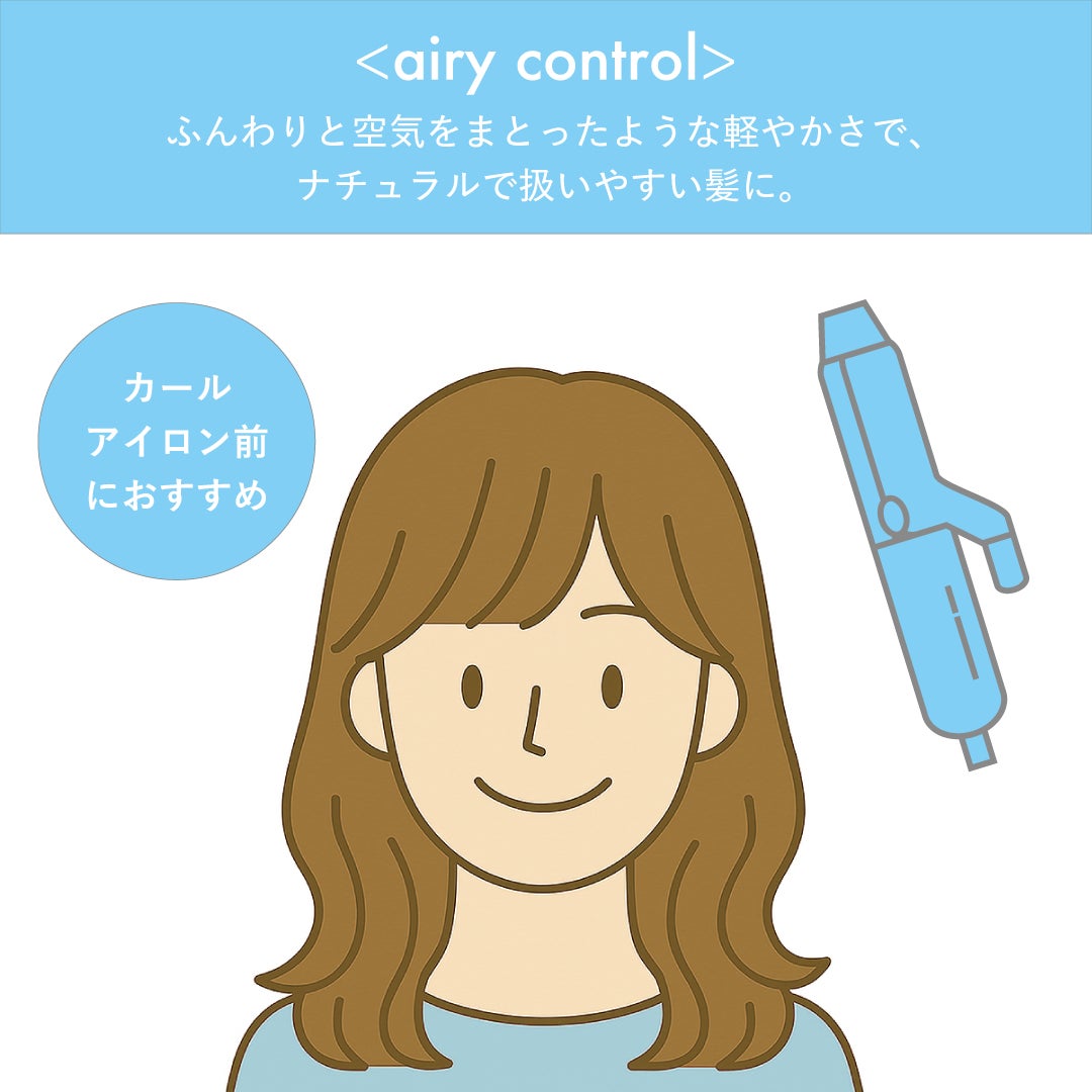 「airy control(エアリーコントロール)」は、ふんわりと空気をまとったような軽やかさで、ナチュラルで扱いやすい髪に。動きをつけたいレイヤースタイルや、柔らかさを出したい日にもぴったりの仕上がりで、カールアイロンでスタイリングをする方に特におすすめ。