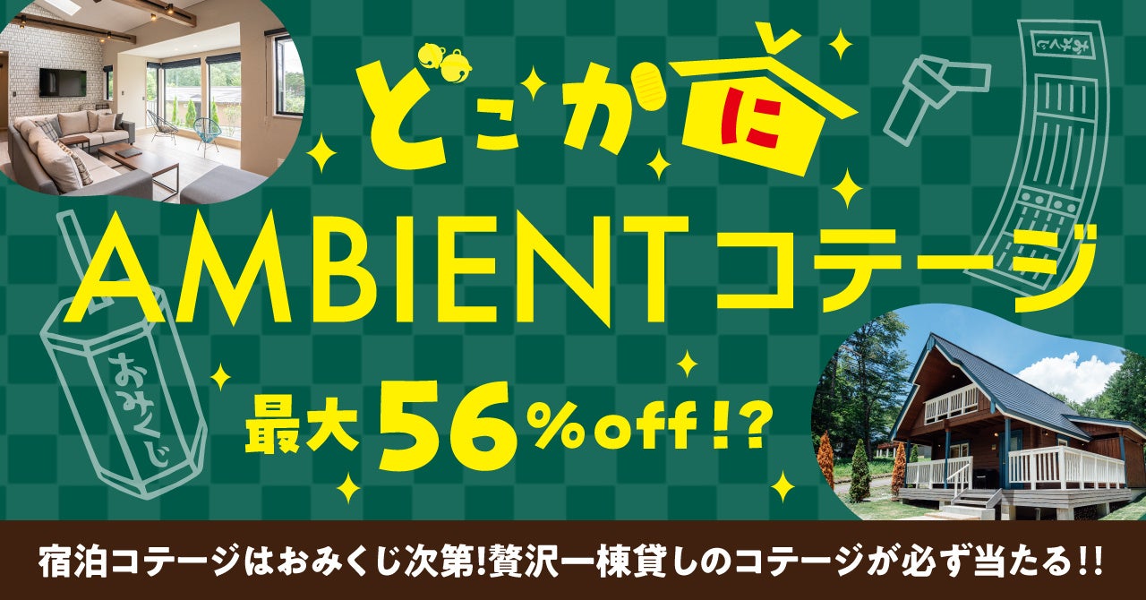 【どこかにAMBIENTコテージ】贅沢一棟貸しコテージが最大56%OFF!行き先はおみくじ次第のキャンペーン開催!