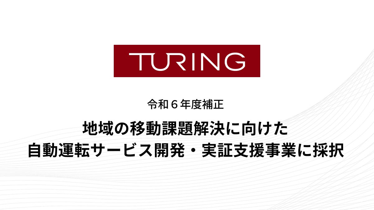 Turing株式会社(本社:東京都品川区、代表取締役:山本 一成、以下「チューリング」)は、経済産業省が公募する令和6年度補正「地域の移動課題解決に向けた自動運転サービス開発・実証支援事業」において、共同提案者の一社として採択されたことをお知らせします。
