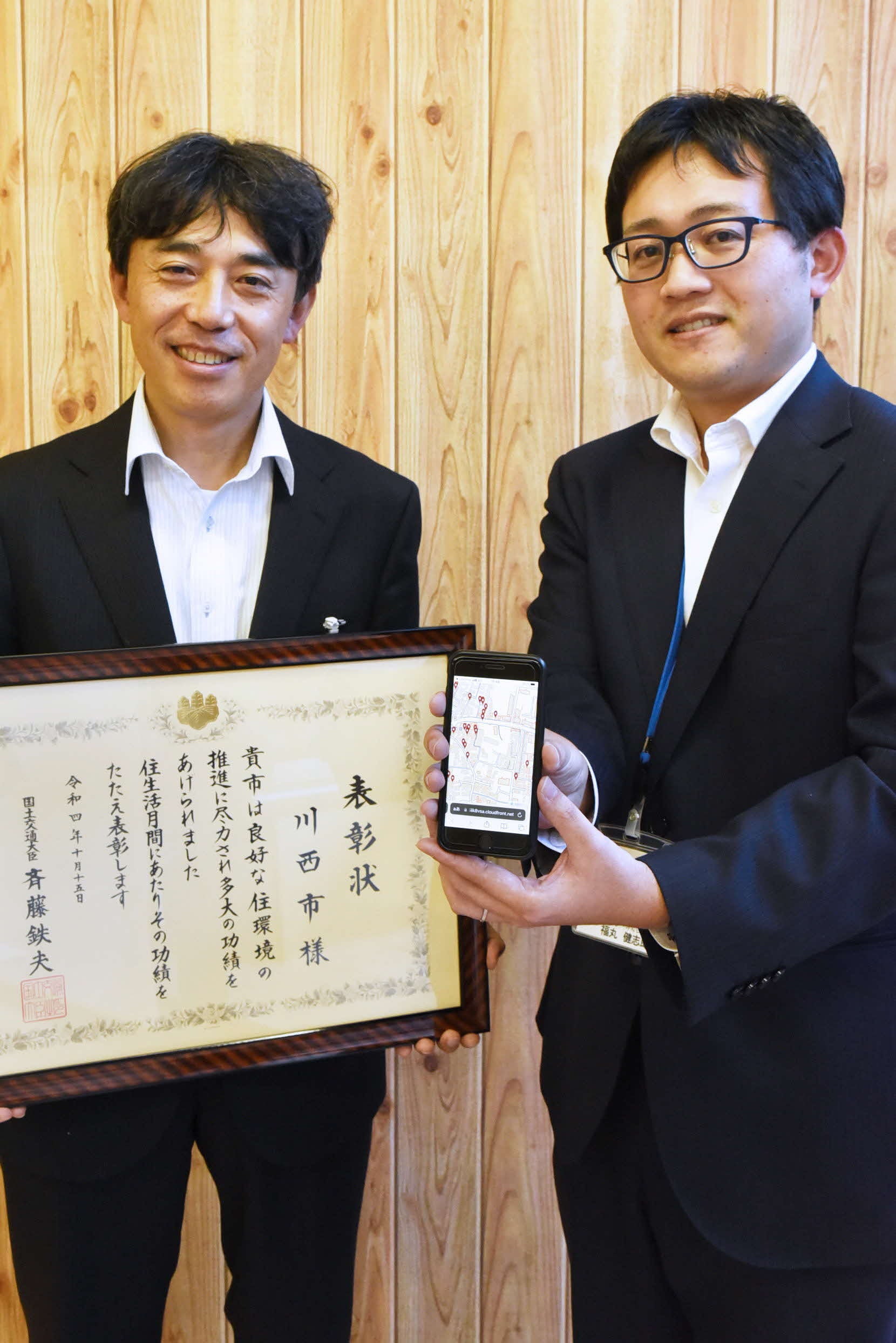 川西市は、スマートフォンを使って空き家を調査できる「空き家調査アプリ(空き家しらべーたー)」を開発した功績が評価され、国土交通大臣表彰を受賞した。