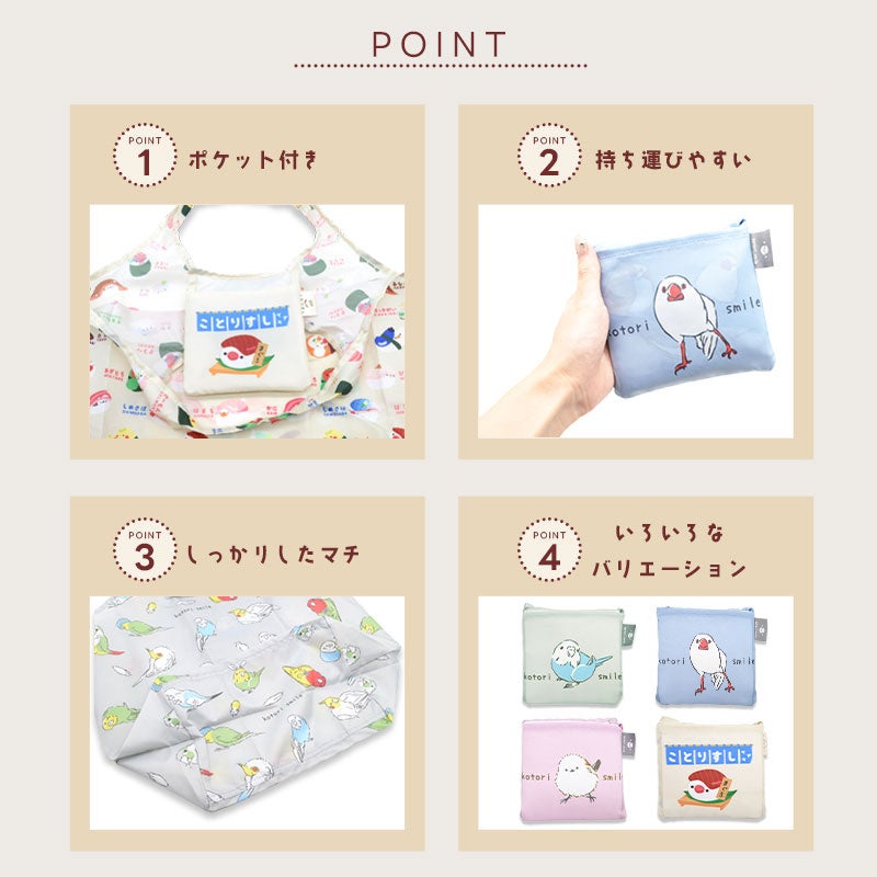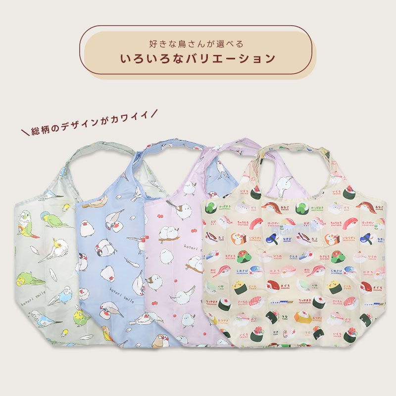 お買い物が楽しくなる機能性バッチリなエコバッグが登場。 かわいらしい小鳥モチーフのデザインが日常をあざやかに彩ります。