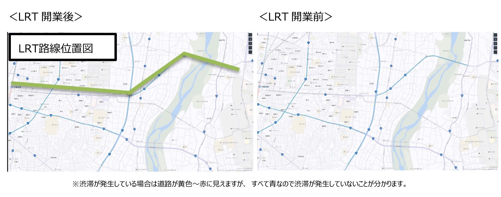 さらに、LRT路線の周辺にある主要道路については、一部区間で自動車通行量が増加しているものの、これによる渋滞は発生しておらず、LRTが既存の自動車通行に与える悪影響は少ないといえるのではないでしょうか。