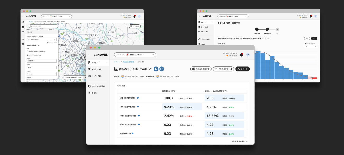 当社がこの度発表する「THE NOVEL」は、これまで当社が培ってきた膨大なエリアデータと解析ノウハウに、AI技術を融合させたビジネス・インテリジェンス・ツールです。