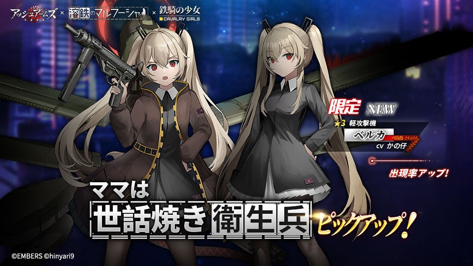 開催期間中、「ママは世話焼き衛生兵」召集で新登場DOLLS★3 軽攻撃機「ベルカ」(かの仔)がピックアップされ確率アップします。