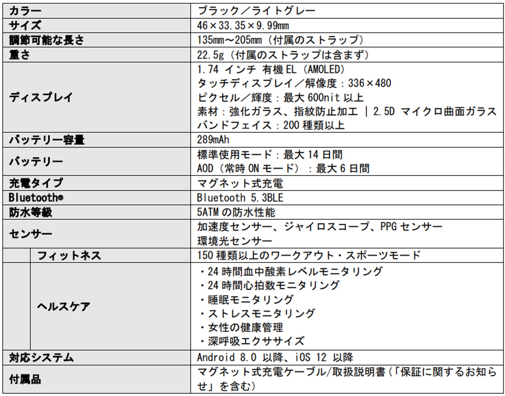 ※ 血中酸素レベルモニタリング機能は、診断、予防、モニタリング、予測、疾患の予後、生理学的プロセスの調査、その他の医療目的を対象としたものではありません。すべてのデータと記録情報は、健康管理のための個人的な参考情報としてのみ使用してください。不安を感じる場合は、医療用の機器を使用するか、医師にご相談ください。