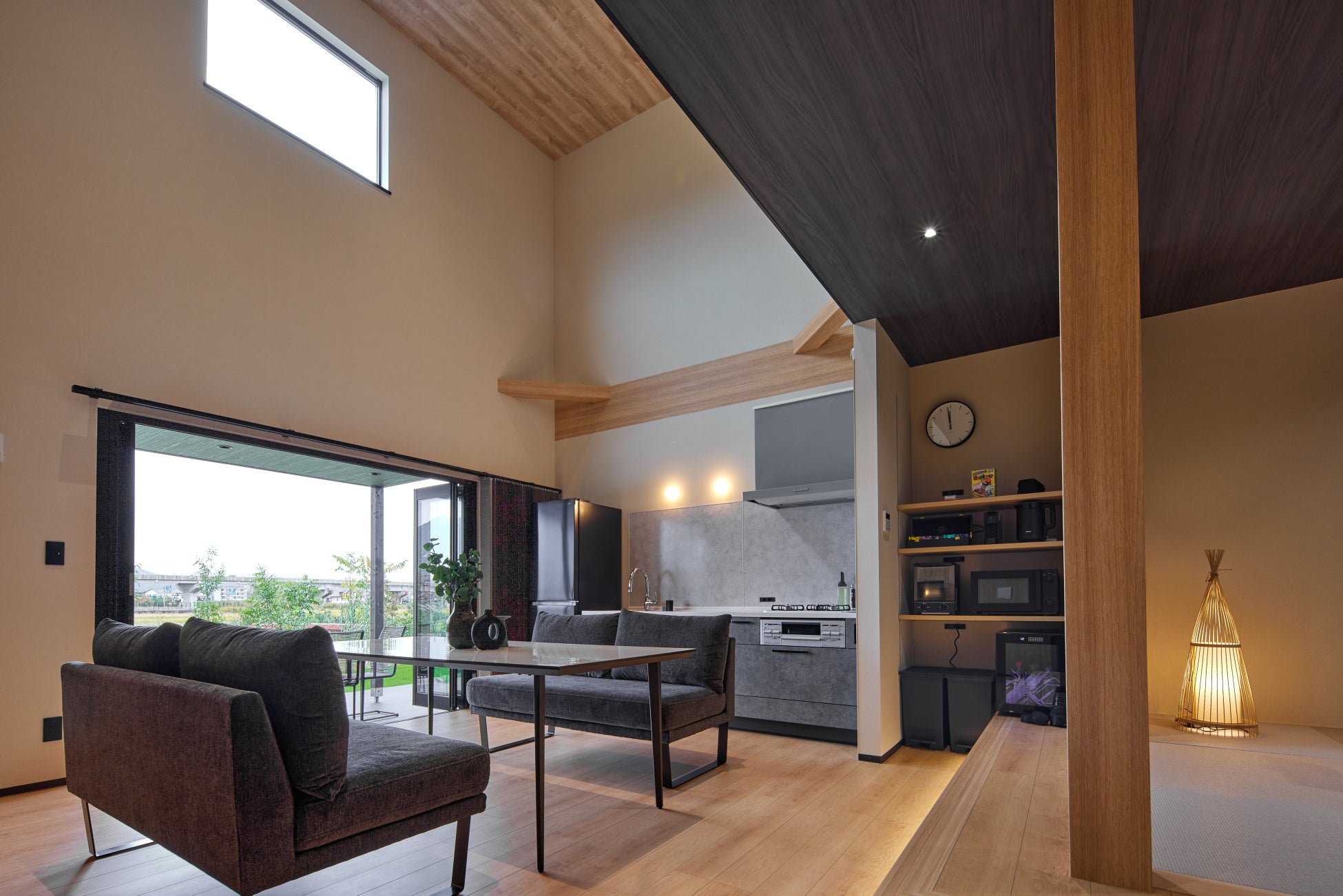 明るい木目のフローリングを用い、温もりを感じられる空間に仕上げています。リビングやダイニングでは、木の質感と柔らかな光が調和し、家族や友人と穏やかに過ごせる、落ち着いた雰囲気を演出します。また、畳の香りが心地よい和室も備えており、小さなお子様がいても安心してくつろげる空間です。