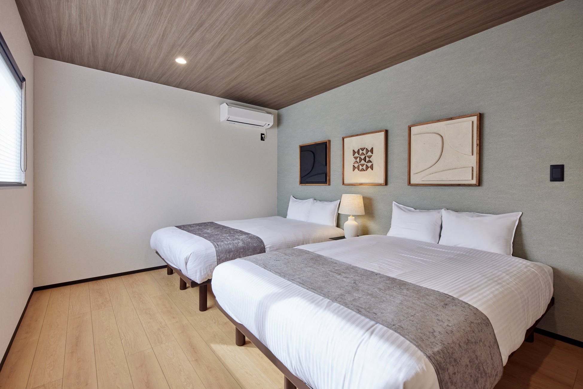 寝室は合計4部屋を備えており、最大14名まで宿泊可能です。1階には、和室にシングル布団4組と、洋室にシングルベッド2台を用意。2階には、ダブルベッド2台を配した寝室と、シングルベッド4台を備えた寝室があり、グループやファミリーでの滞在にも十分な広さを確保しています。