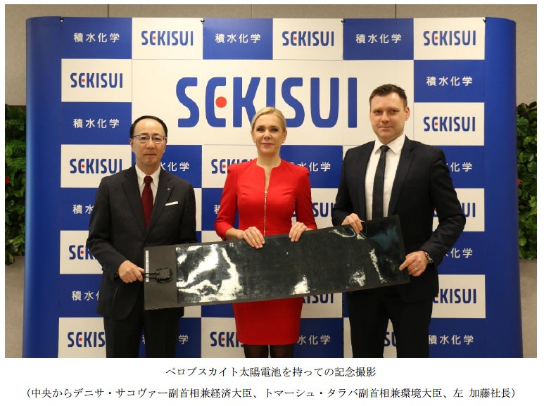 積水化学工業株式会社(代表取締役社長:加藤 敬太、以下「当社」)は、スロバキア共和国におけるカーボンニュートラル推進に対し、当社のフィルム型ペロブスカイト太陽電池がどのように貢献できるか、また太陽電池に関する法規制の状況を含む社会実装への課題検討を、スロバキア共和国内の大学や研究機関と2024年~2026年に実施する旨の覚書を、スロバキア共和国経済省と締結しました。