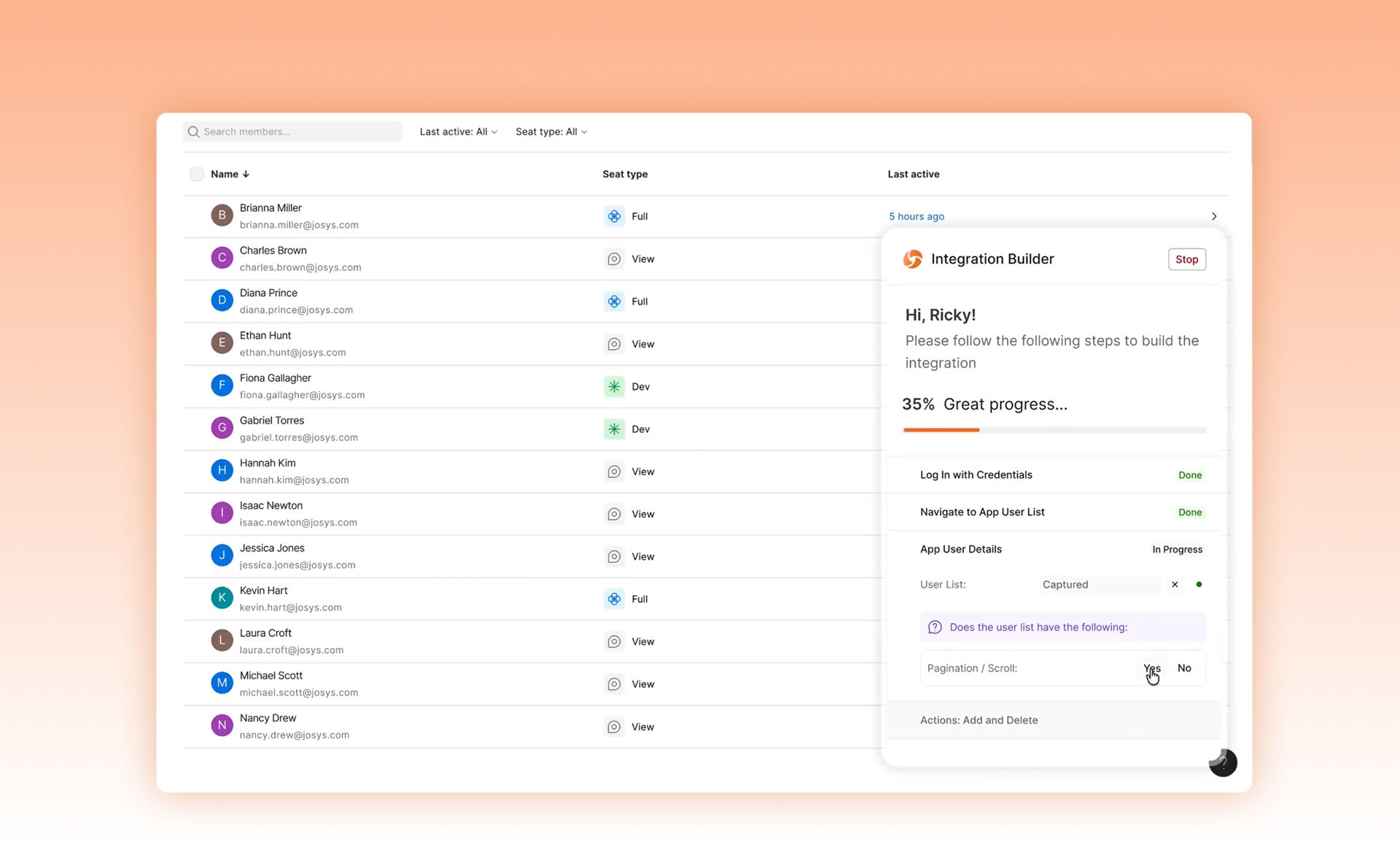 学習と生成:ジョーシスが記録された操作ログを解析し、汎用的な自動操作ルールを即座に生成します。