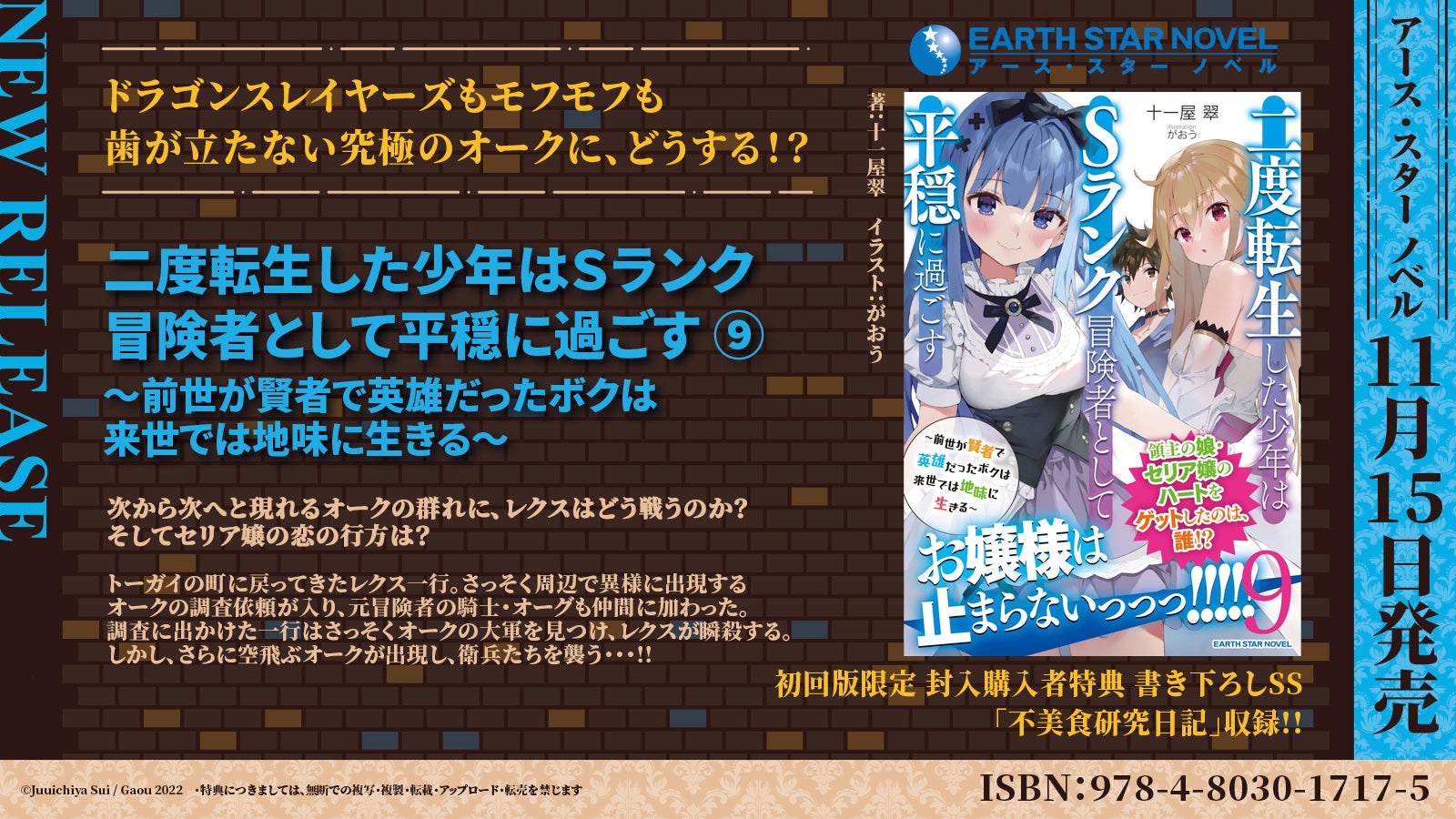 『二度転生(9)』などの人気作が登場!アース・スターノベル新刊<11/15発売>