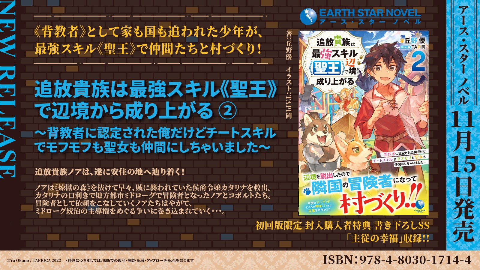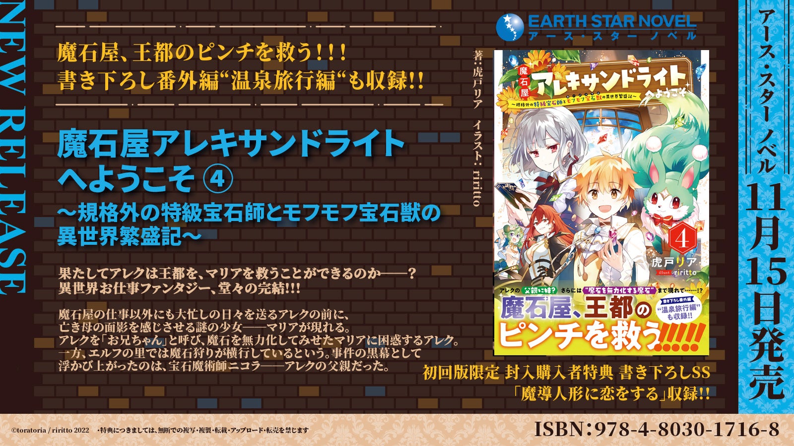 株式会社アース・スター エンターテイメント(東京都品川区)は【アース・スター ノベル】11月新刊を2022年11月15日(火)より発売いたします。