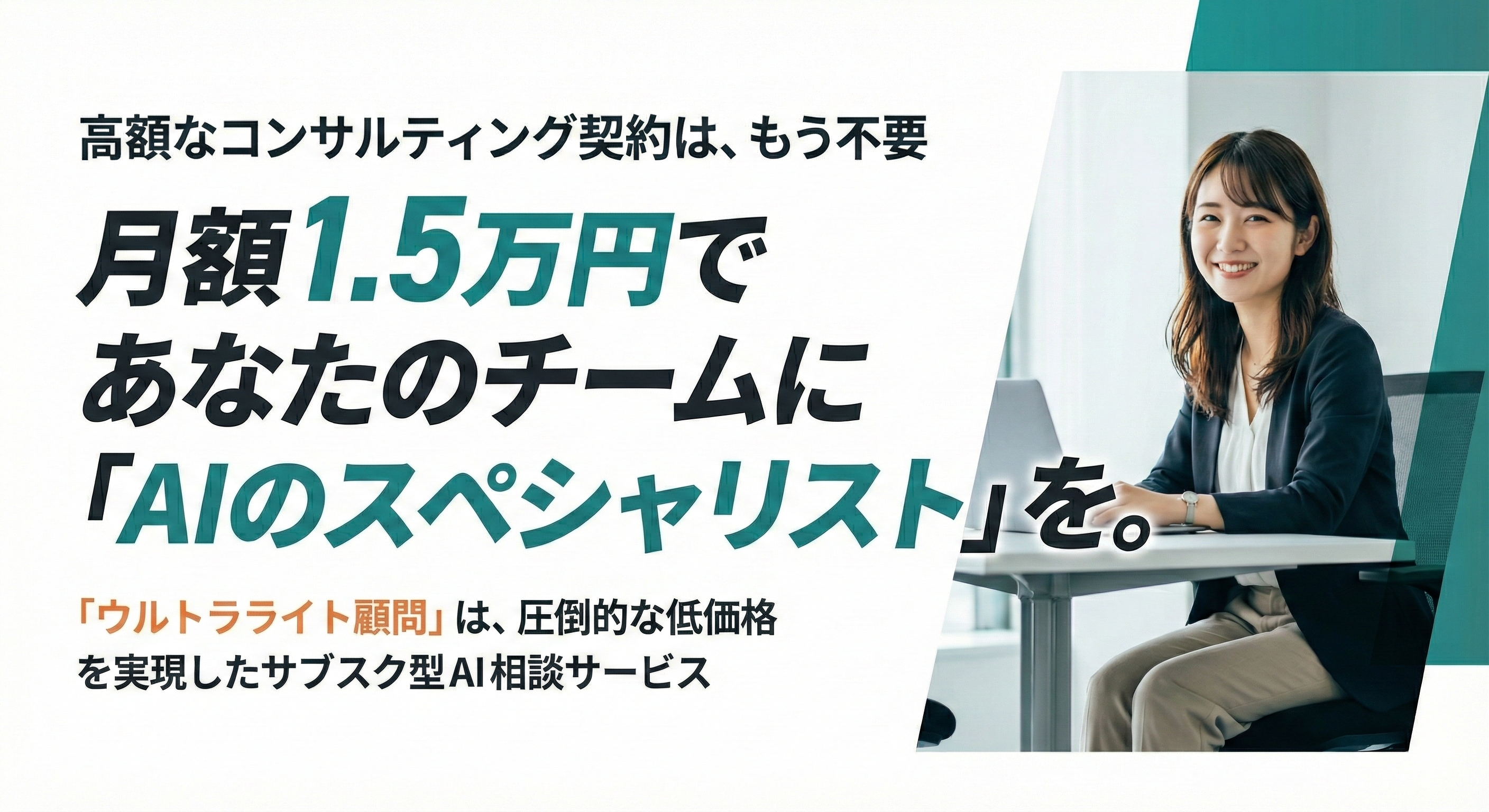 2026年3月より、月額1.5万円でAIに関するあらゆる疑問を気軽に相談できるサブスクリプション型サービス**『ウルトラライト顧問』**の提供を開始いたします。
