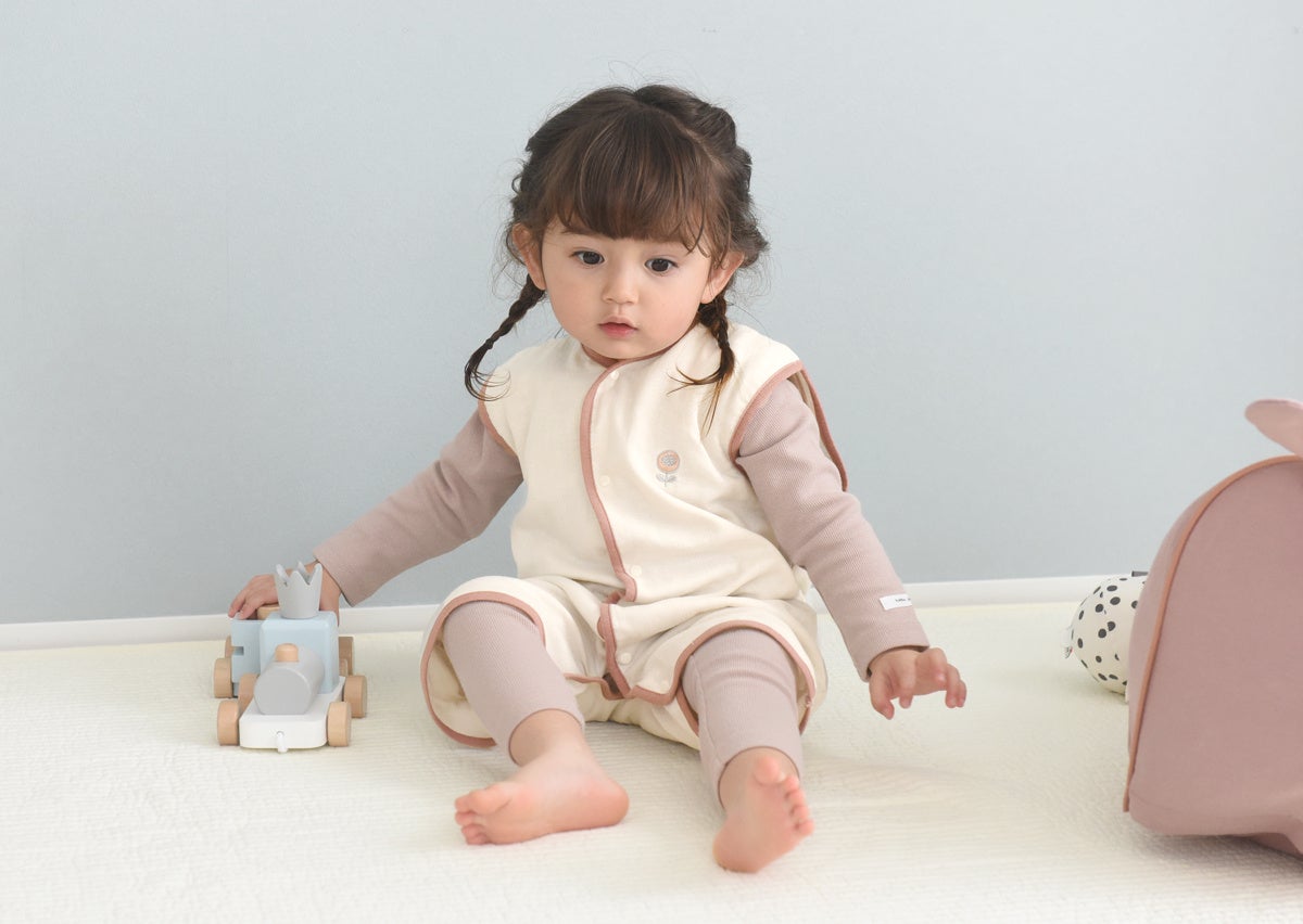 シンプルデザインのスリーパーでも、絶妙なカラーリングで可愛さをプラス。
