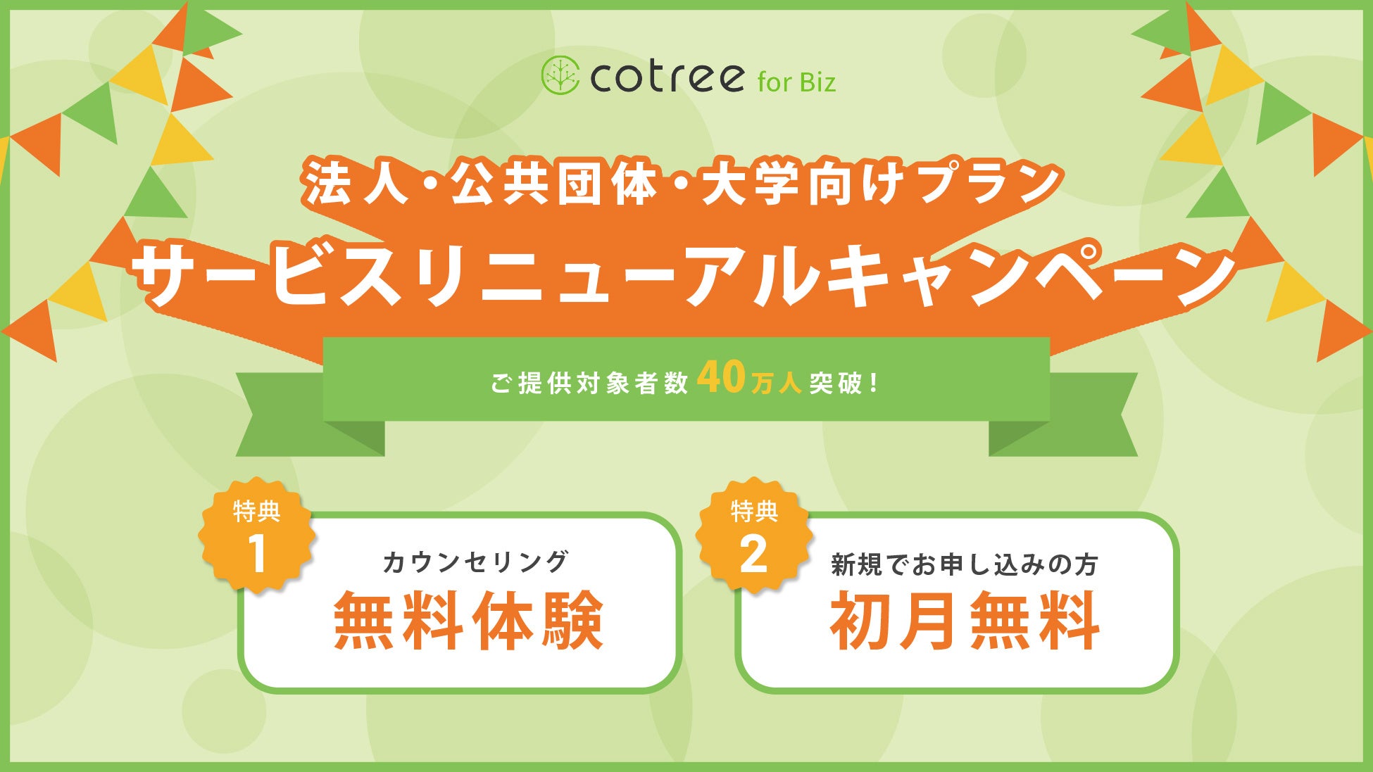 オンラインカウンセリングcotreeの法人向けサービス「cotree for Biz」のリニューアルを記念し、初月無料キャンペーンを実施!