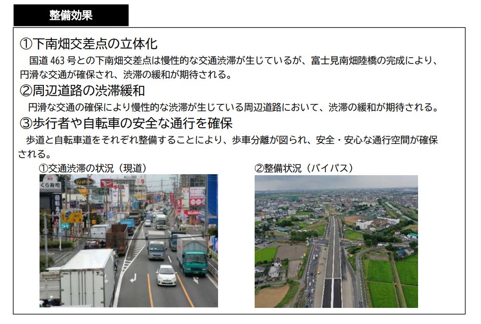 この区間の開通により、円滑な交通が確保され、周辺道路の渋滞緩和や歩行者・自転車の安全・安心な通行空間の確保が図られます。