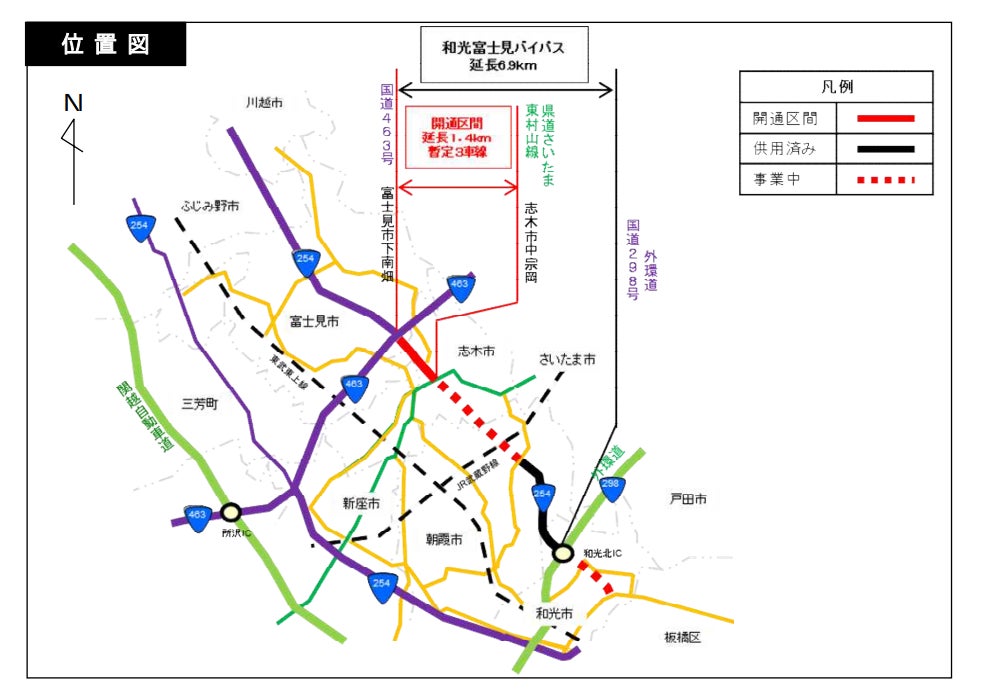 開通区間 志木市中宗岡地内(県道さいたま東村山線)~富士見市下南畑地内(国道463号)