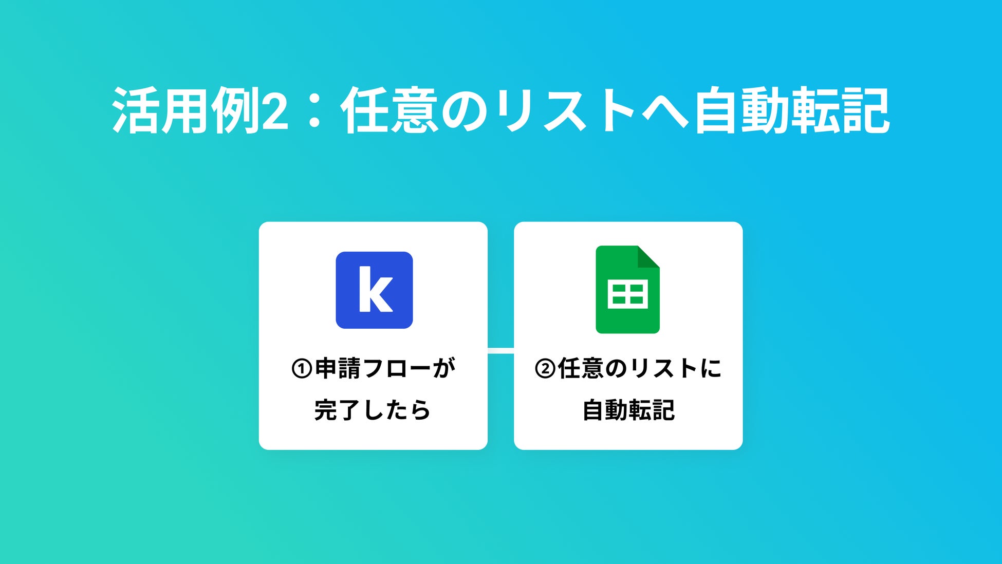 kickflowで承認が完了したら、任意のスプレッドシートに情報を自動転記します。このフローにより、kickflowで完了した申請の一覧を任意のシートで一元管理することができます。