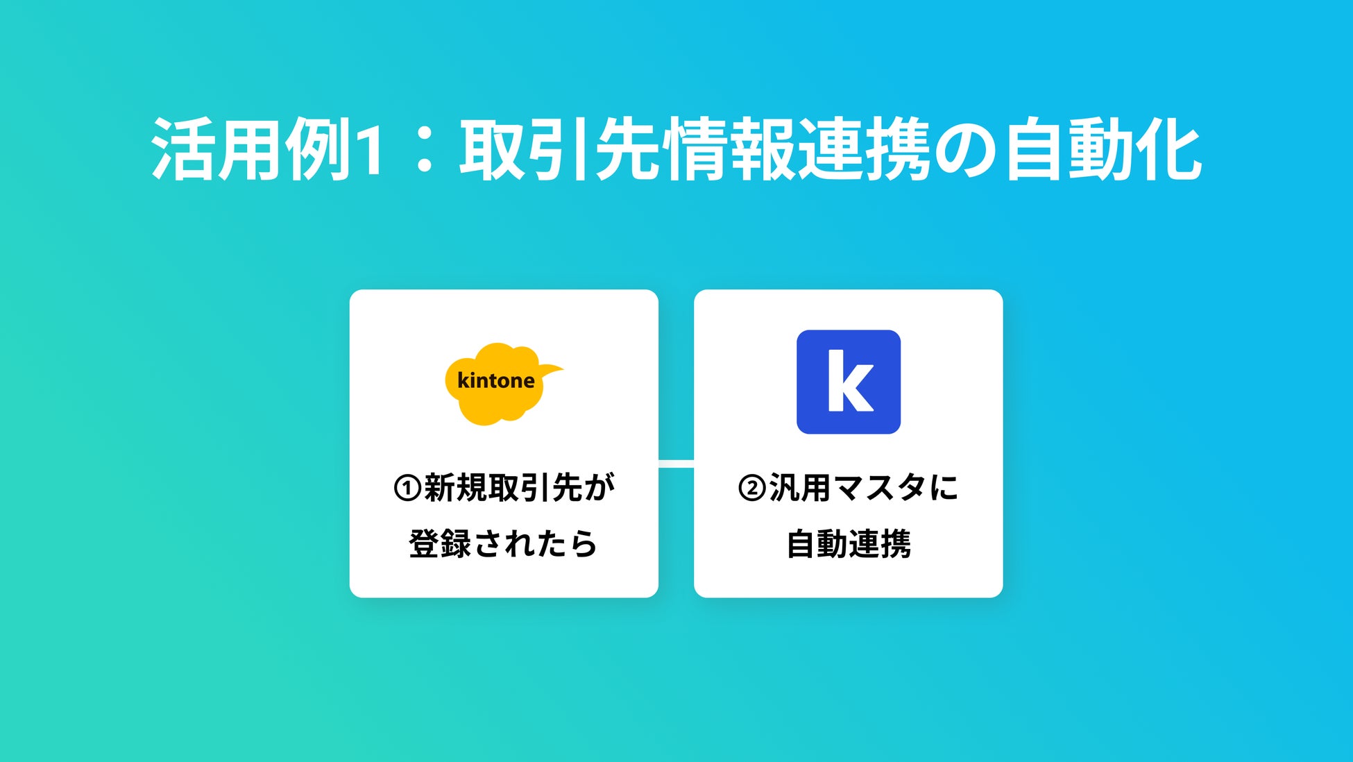 kintoneに新規で取引先が登録されたら、kickflowの汎用マスタに自動で連携します。このフローにより、kickflowでの都度の情報登録が不要になります。