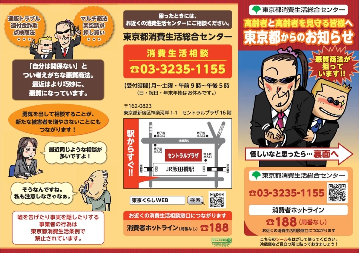 官民連携 東京都消費生活総合センターと連携 悪質商法から高齢者を守るリーフレット配布を実施